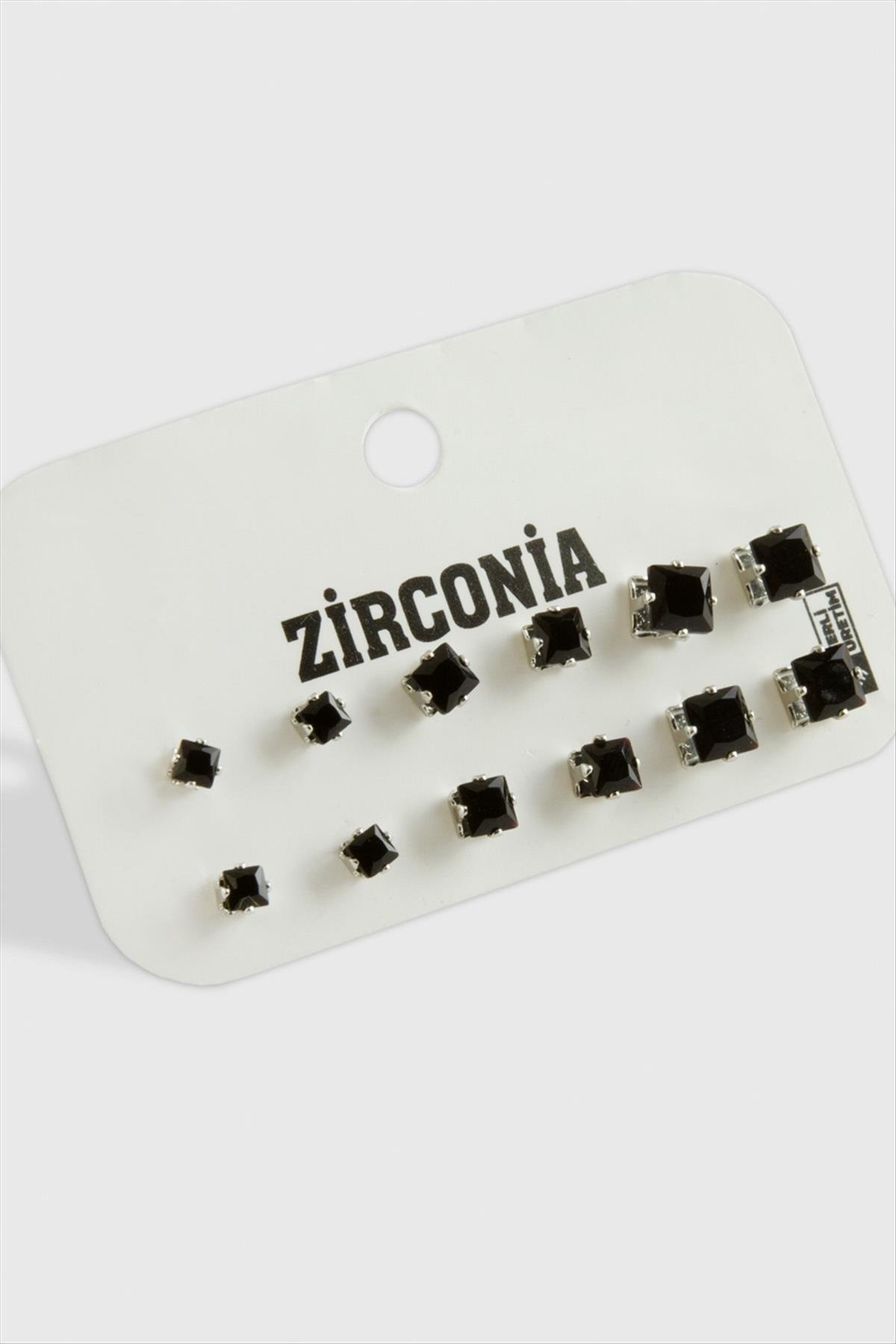 12 Adet Kare Zirkon Tek Taşlı Küpe