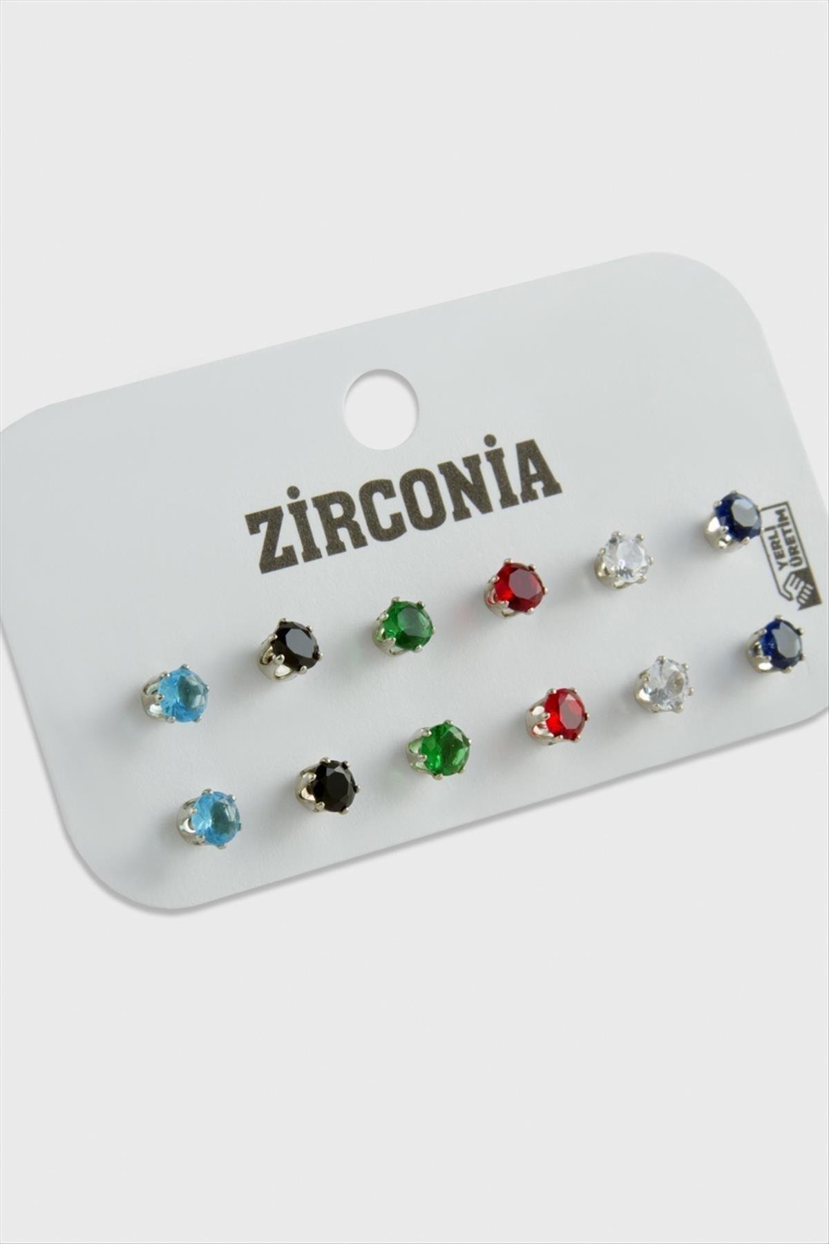 12 Adet Renkli Zirkon Tek Taşlı Küpe