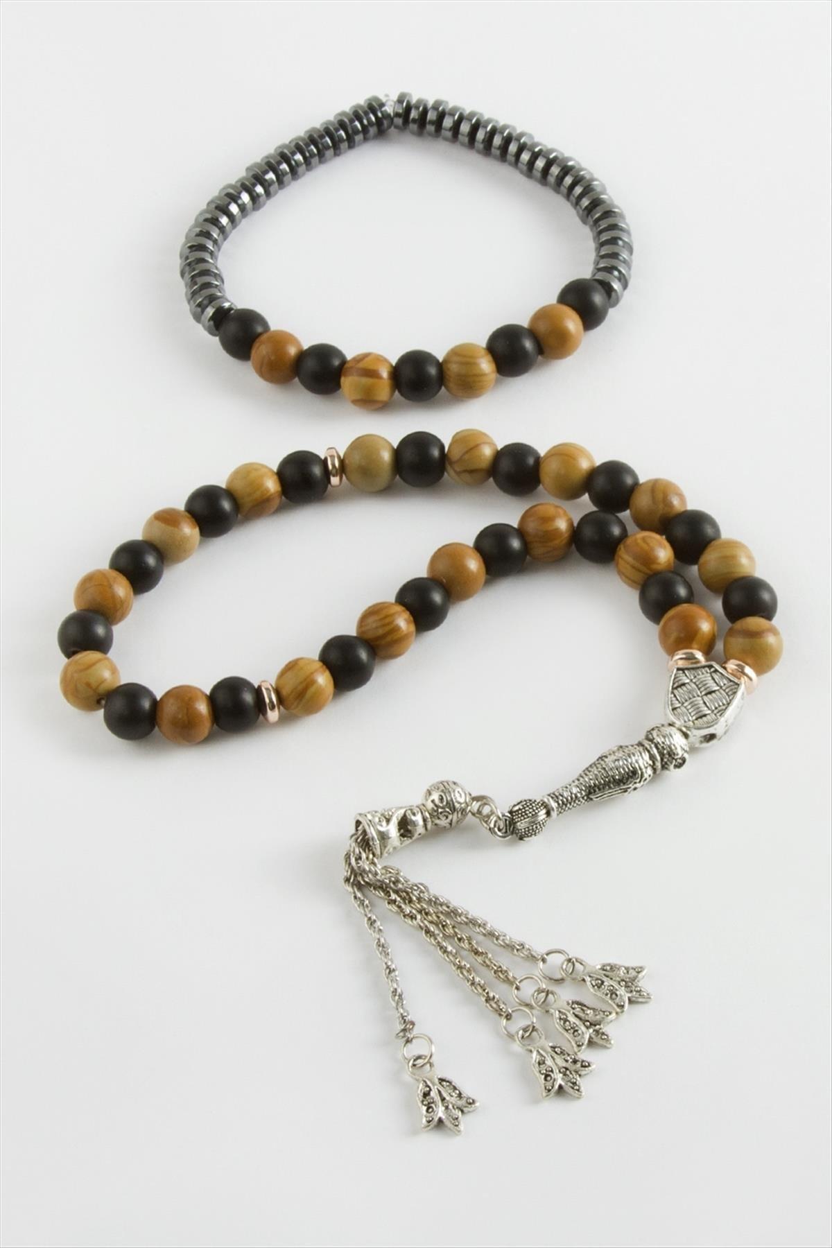 2'li Set; Ürün jasper-onix doğaltaş malzemeden üretilmiştir. 1 paket içerisinde bileklik ve tesbih olarak gönderilecektir.