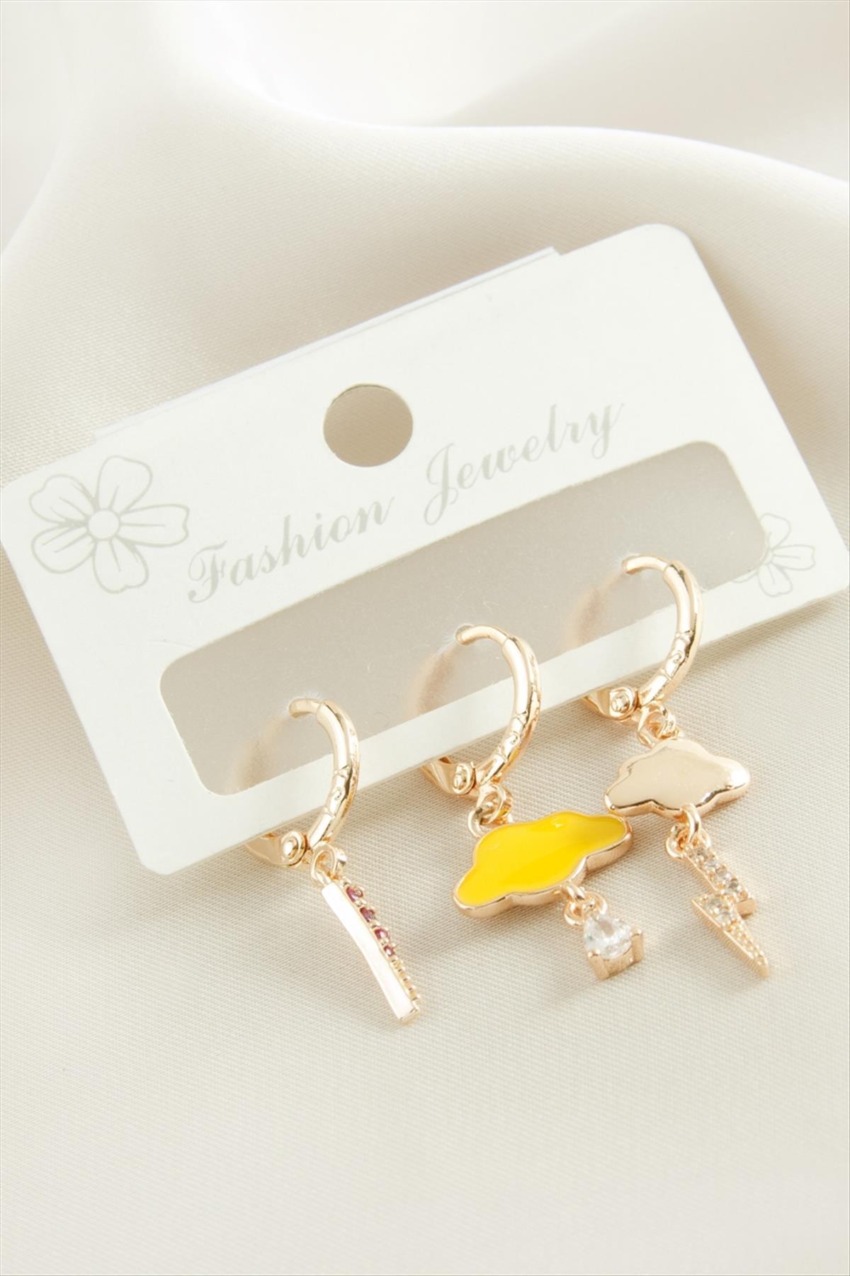 3 Adet Bulut Şimşek Zirkon Taşlı Küpe