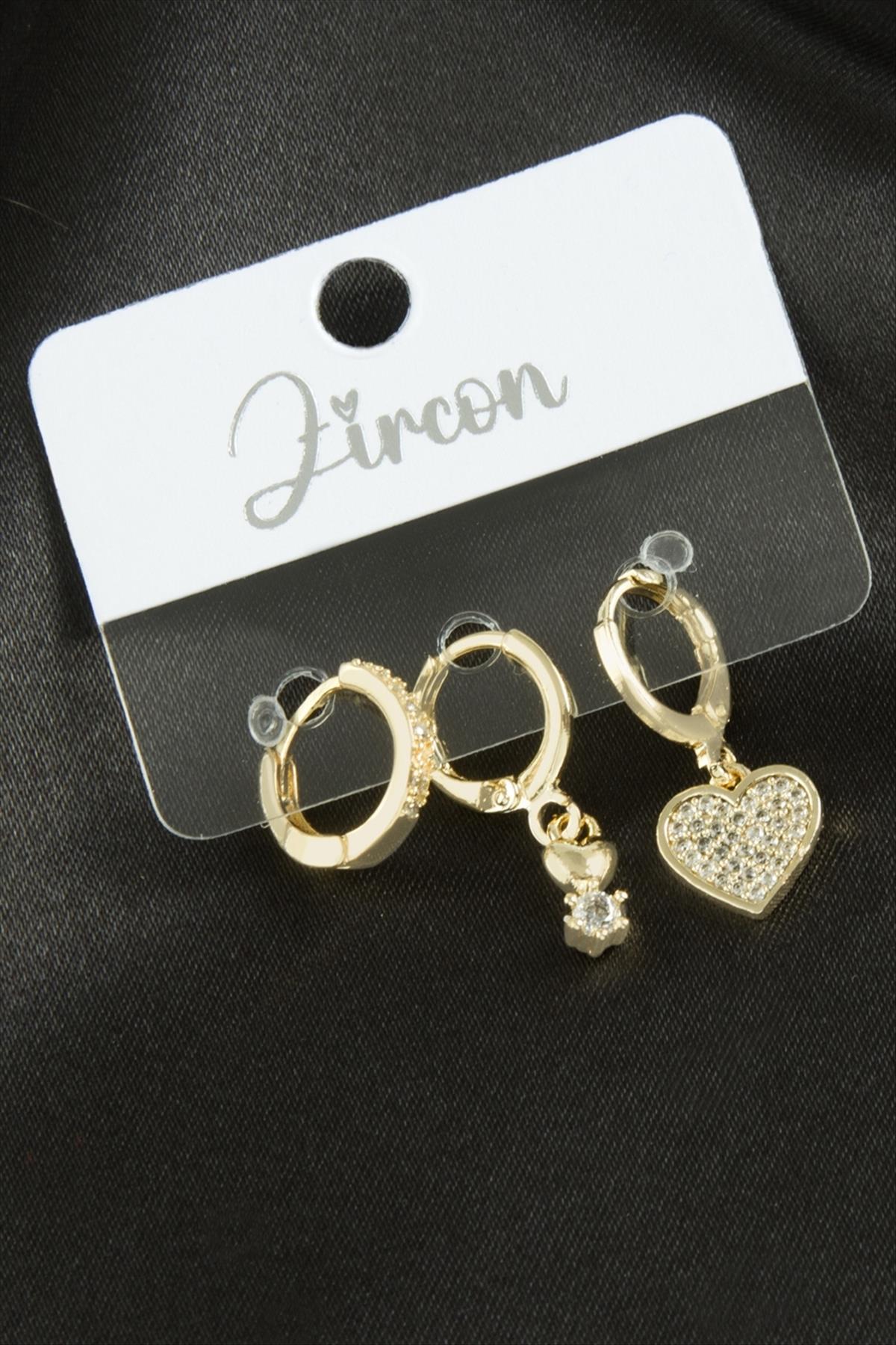 3 Adet Kalp Zirkon Taşlı Küpe