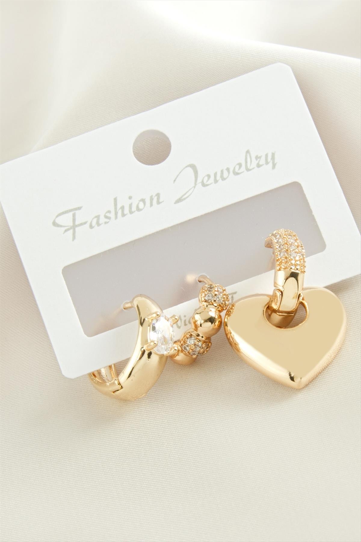 Küpe; Ürün malzemesi metal ve zirkon taşından imal edilmiştir. 1 sınıf kaliteli malzeme kullanılmıştır. Ürün boyu 2,5 cmdir. 1 kartta 3 adet küpe bulunmaktadır.