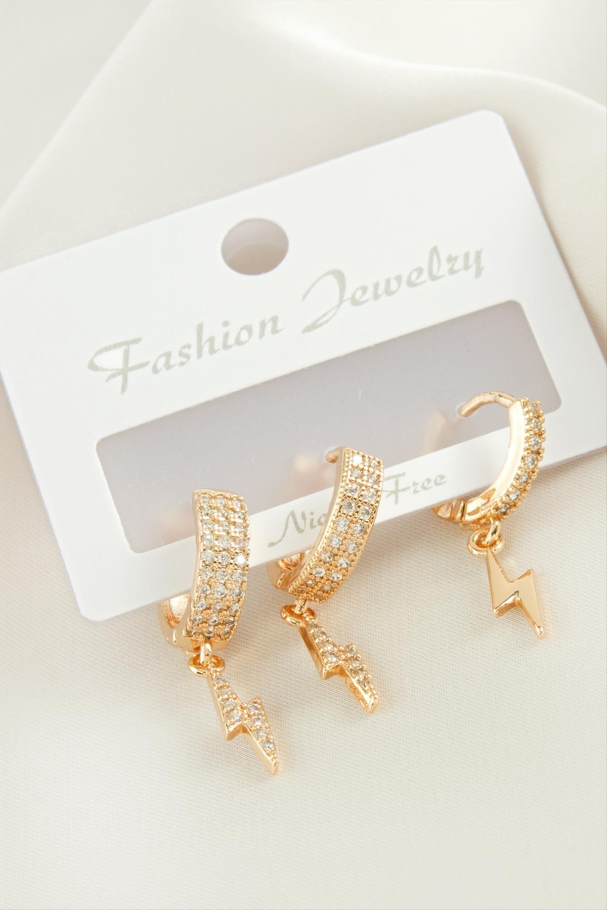 3 Adet Şimşek Zirkon Taşlı Küpe