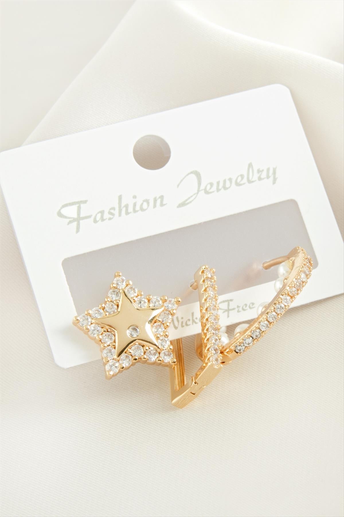 3 Adet Yıldız İnci Zirkon Taşlı Küpe