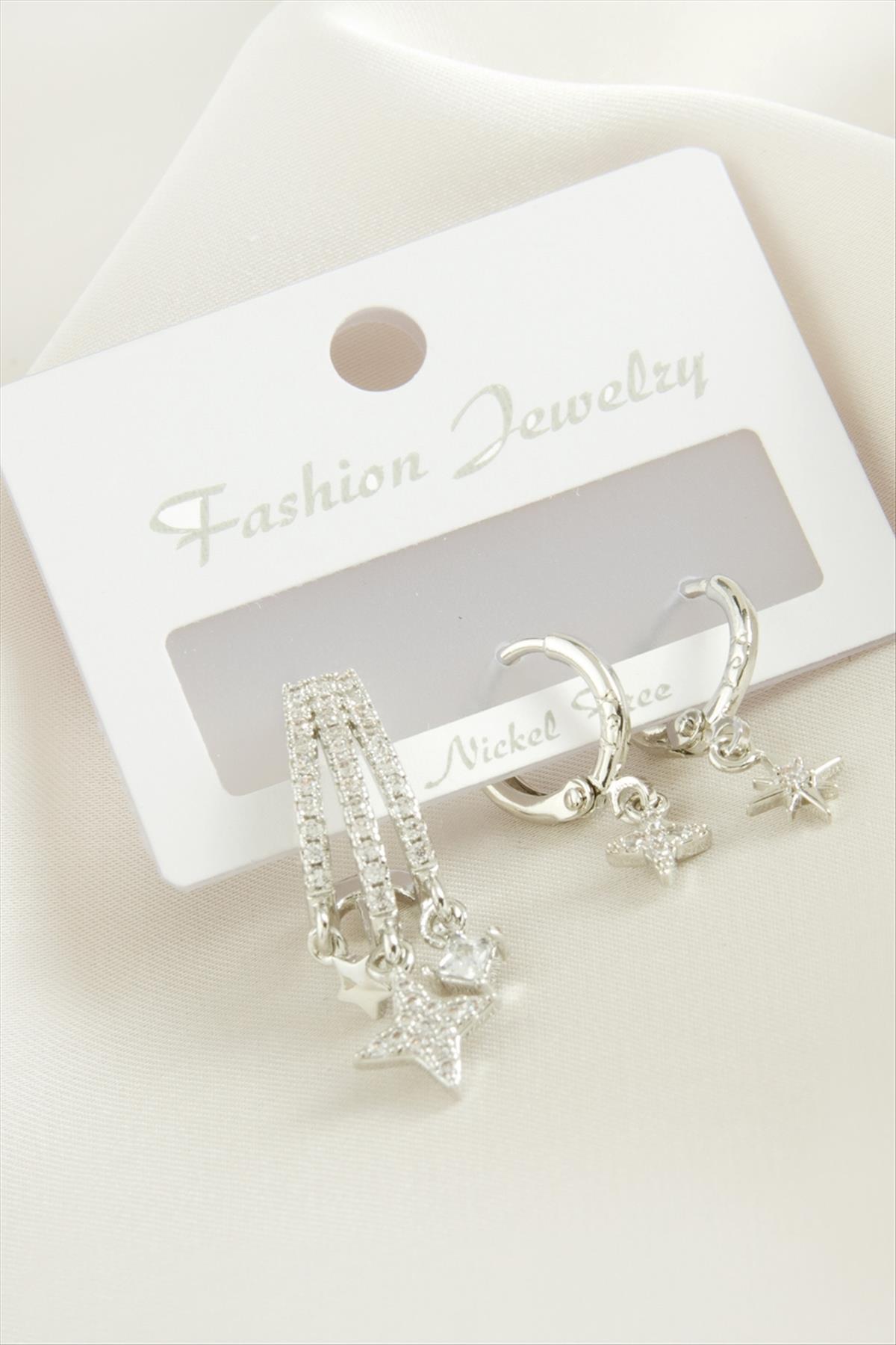 3 Adet Yıldız Zirkon Taşlı Küpe