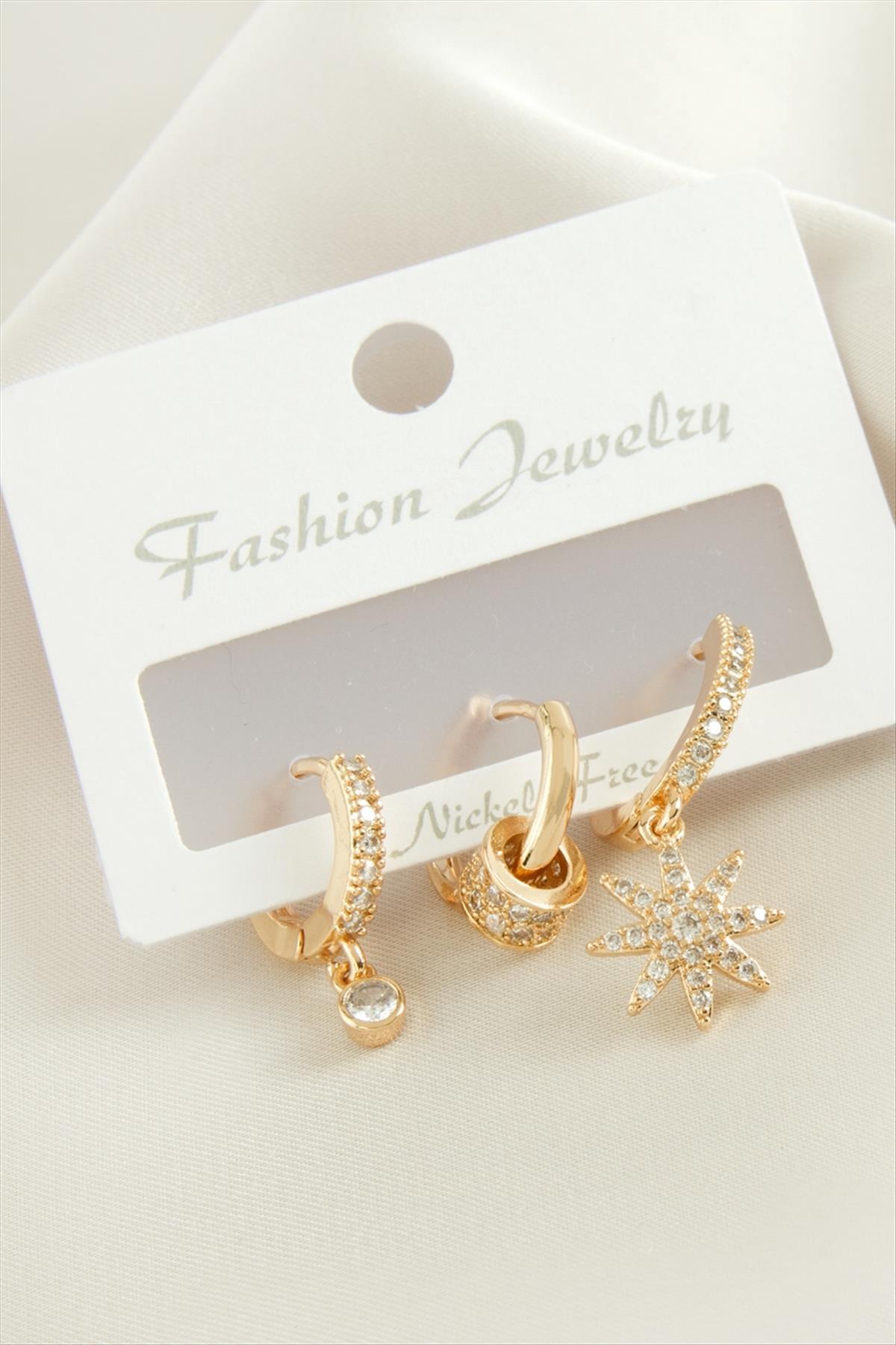 3 Adet Yıldız Zirkon Taşlı Küpe