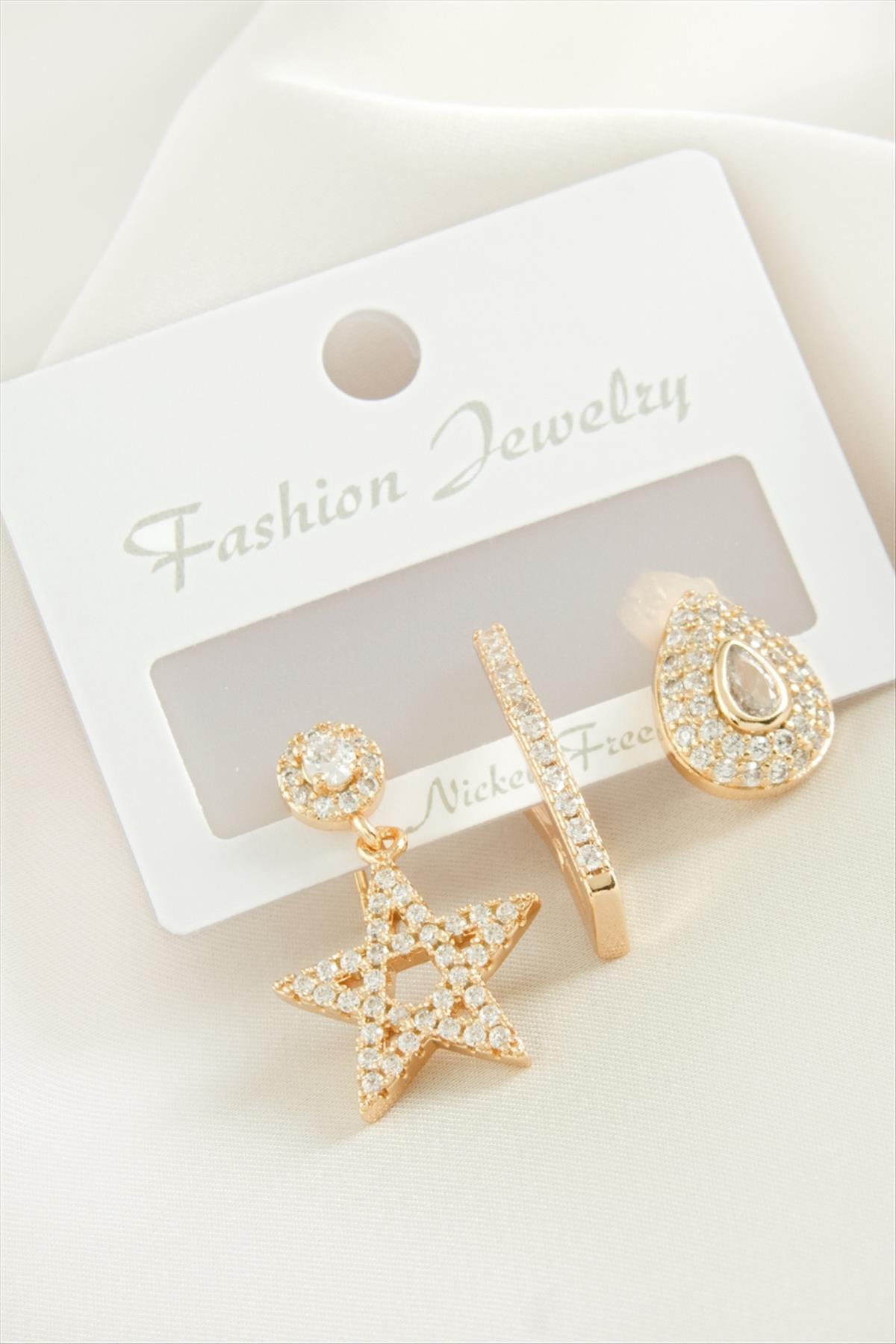 3 Adet Yıldız Zirkon Taşlı Küpe