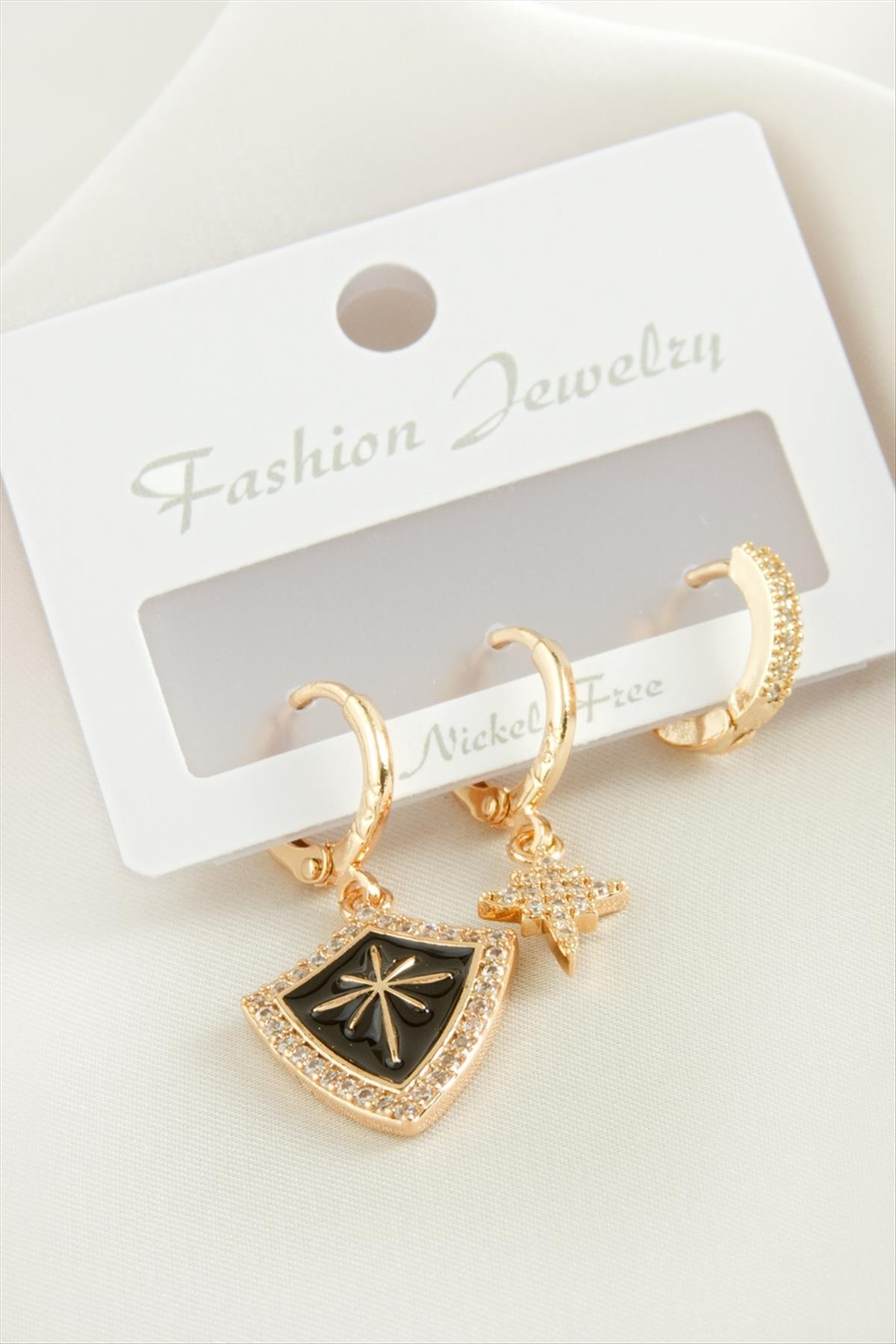 3 Adet Yıldız Zirkon Taşlı Küpe