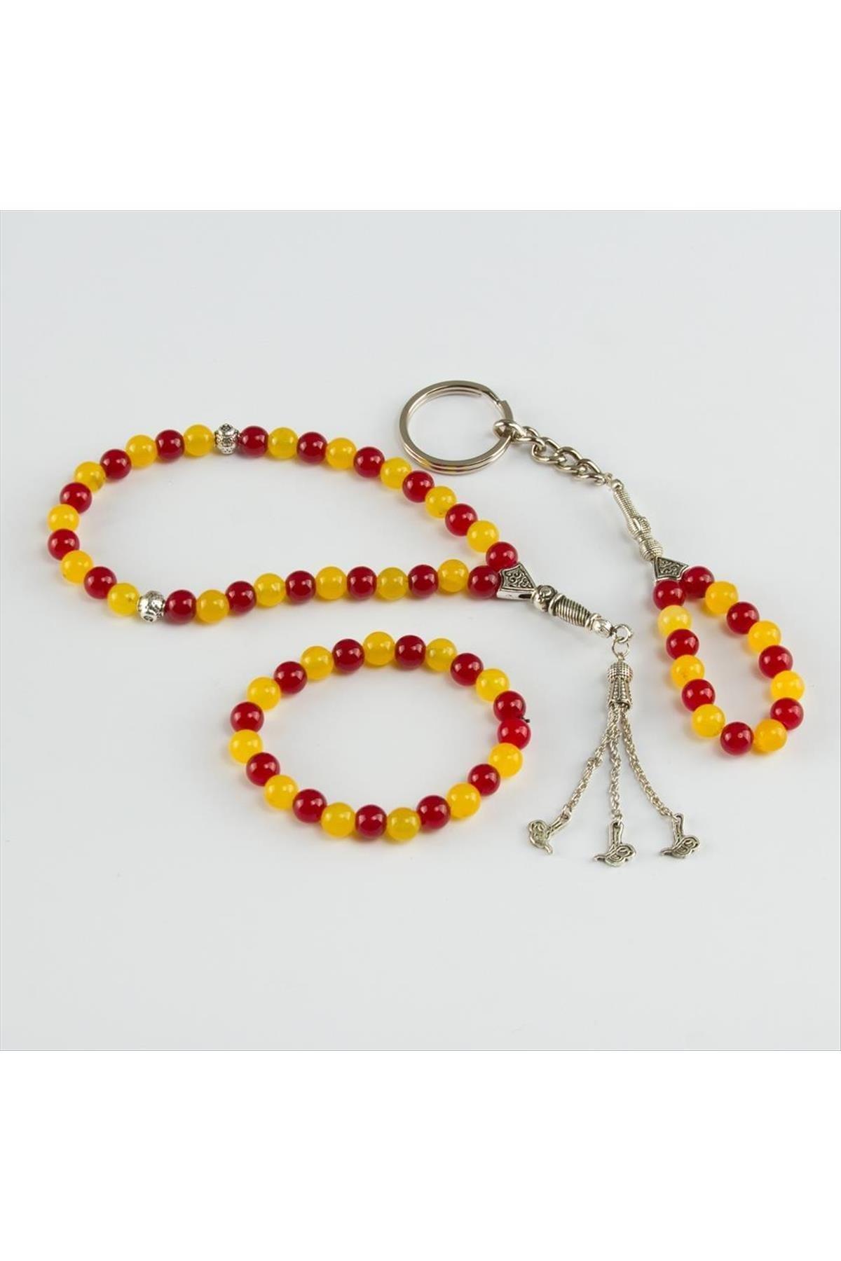 3'lü Set; Ürün doğaltaş malzemeden üretilmişdir. 1 paket içerisinde anahtarlık, bileklik ve tesbih olarak gönderilecekdir.