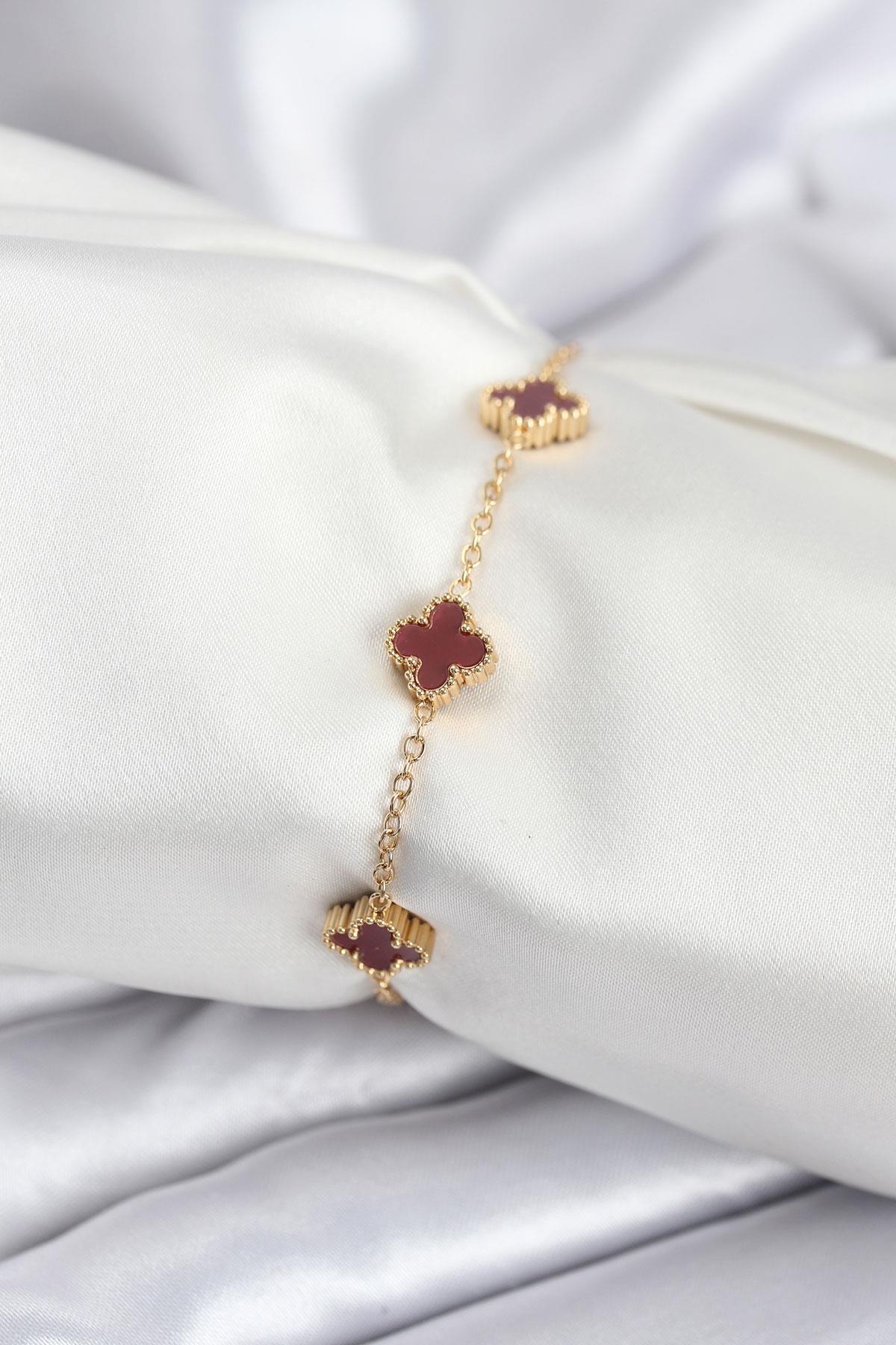 316L Çelik Gold Renk Bordo Baby Boy Yonca Kadın Bileklik - PRT3500EB08983