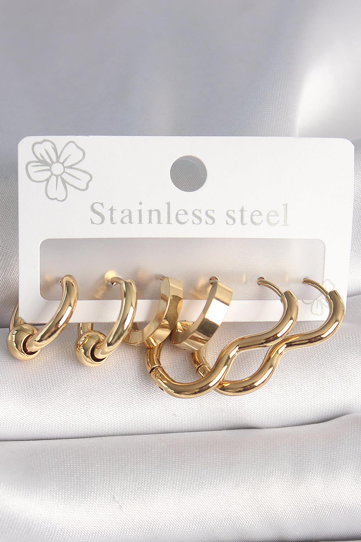 316L Çelik Gold Renk Kalp Halka Model Kadın Küpe Seti - PRT3500EB04413