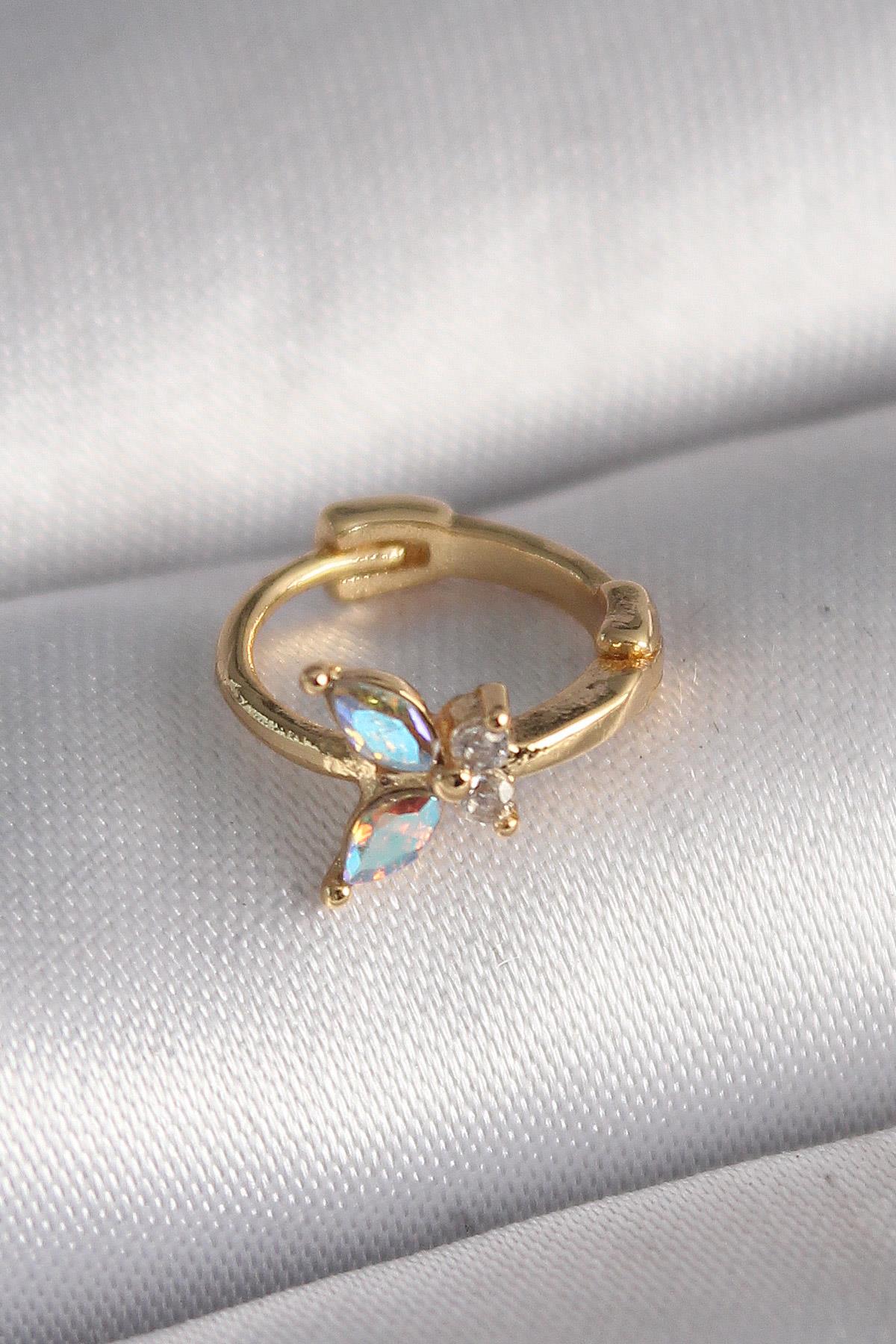 316L Çelik Gold Renk Zirkon Taşlı Kelebek Model Tragus Piercing