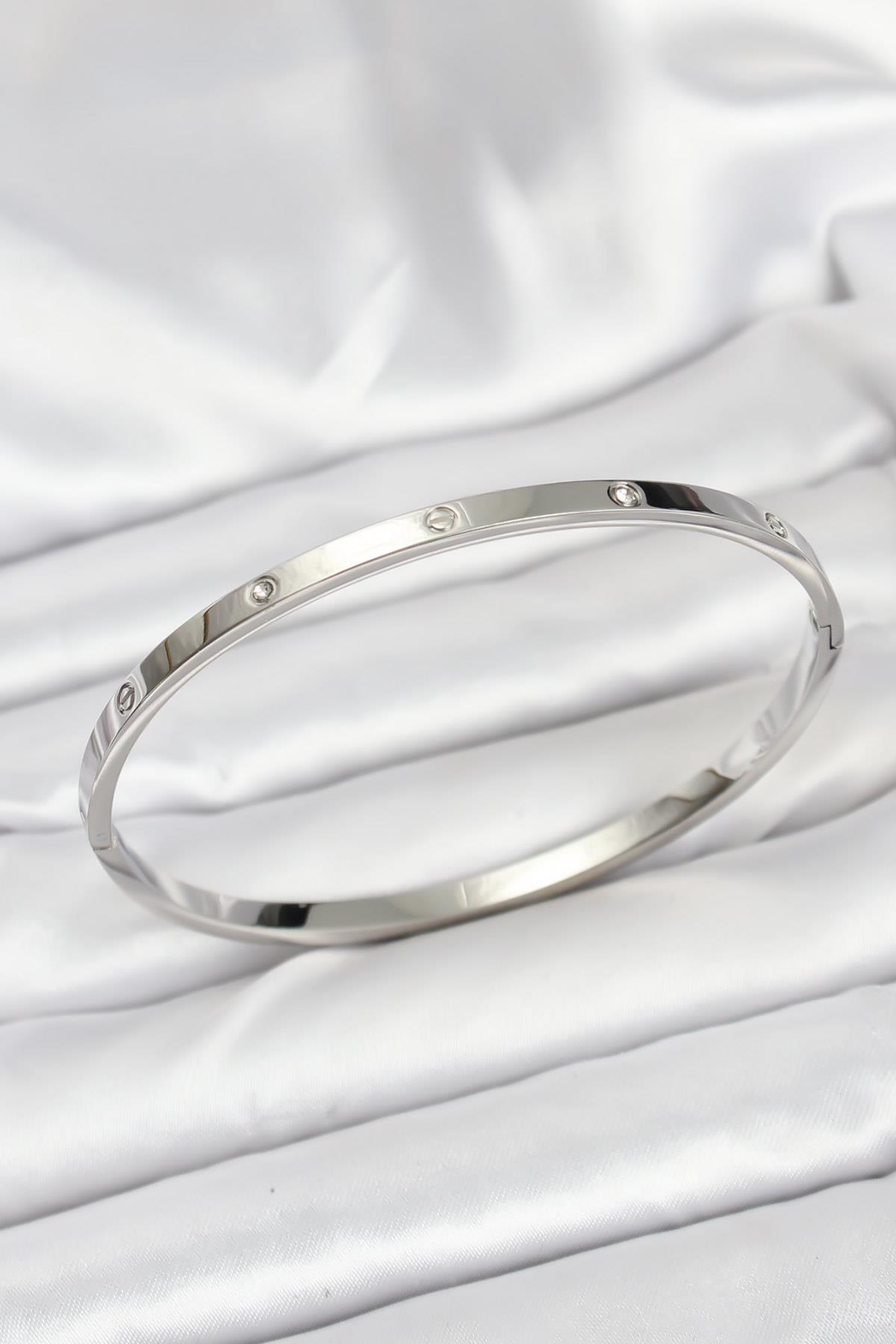 316L Çelik Gümüş Renk 65 mm İnce Kadın Kelepçe Bileklik - PRT3500EB08909