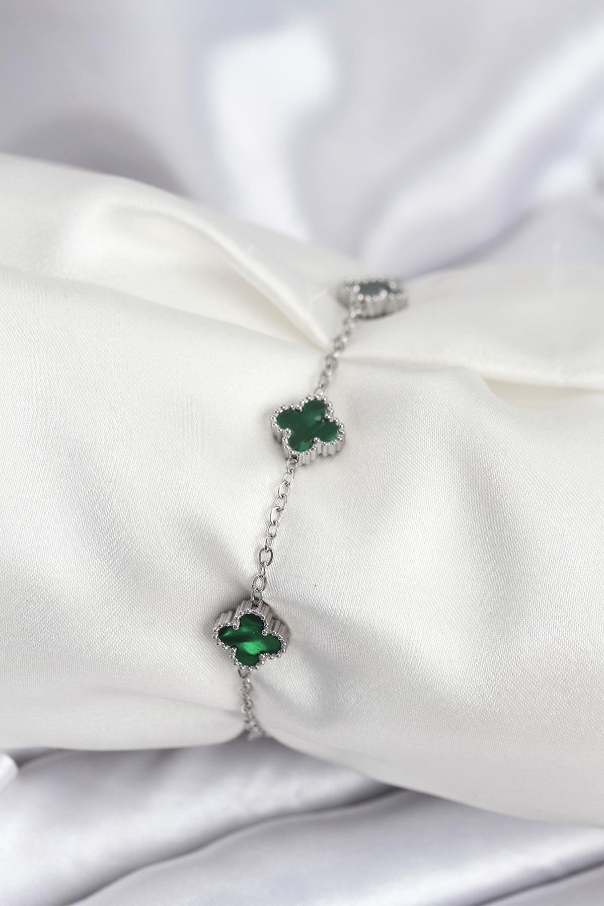 316L Çelik Gümüş Renk Yeşil Baby Boy Yonca Kadın Bileklik - PRT3500EB08978