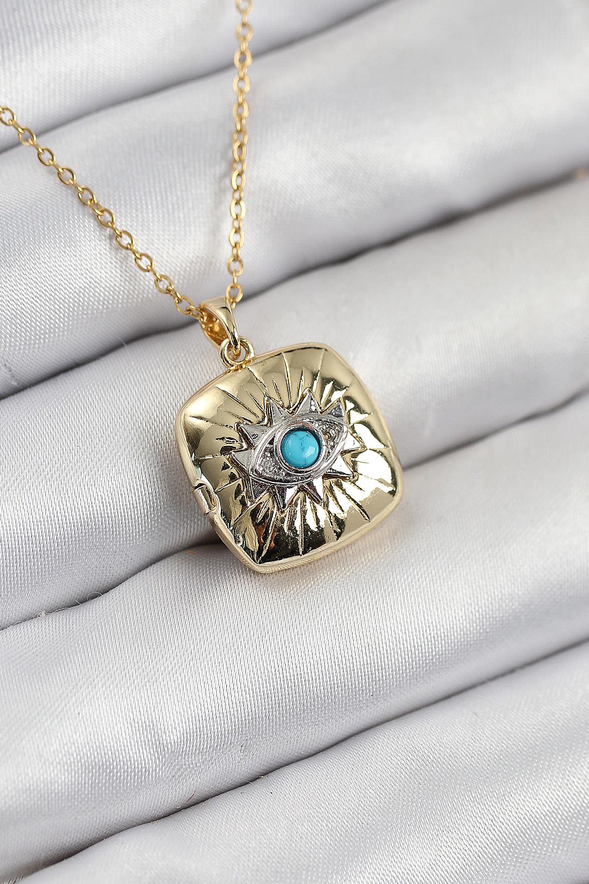 316L Çelik Zirkon Taşlı Açılabilr Kapaklı Göz Model Gold Renk Kadın Kolye - PRT3500EB08700
