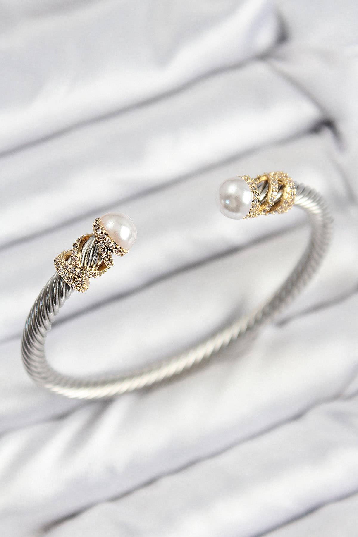 316L Çelik Zirkon Taşlı İnci Model Gold Ve Gümüş Renk Kadın Bileklik