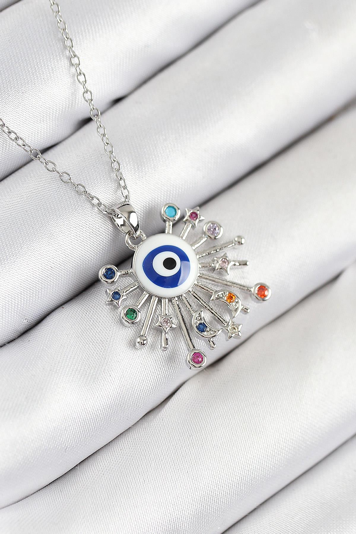 316L Çelik Zirkon Taşlı Nazar Model Gümüş Renk Kadın Kolye - PRT3500EB08775