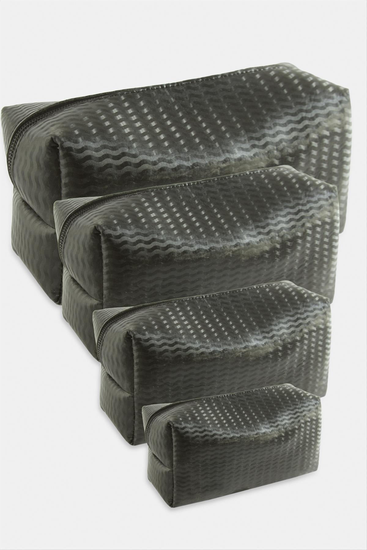 Makyaj Çantası; Ürün malzemesi suni deri ve fermuarlıdır. Fiyat 1 pakette 4 adet çanta için geçerlidir. Çantalar iç içe geçebilmektedir.
