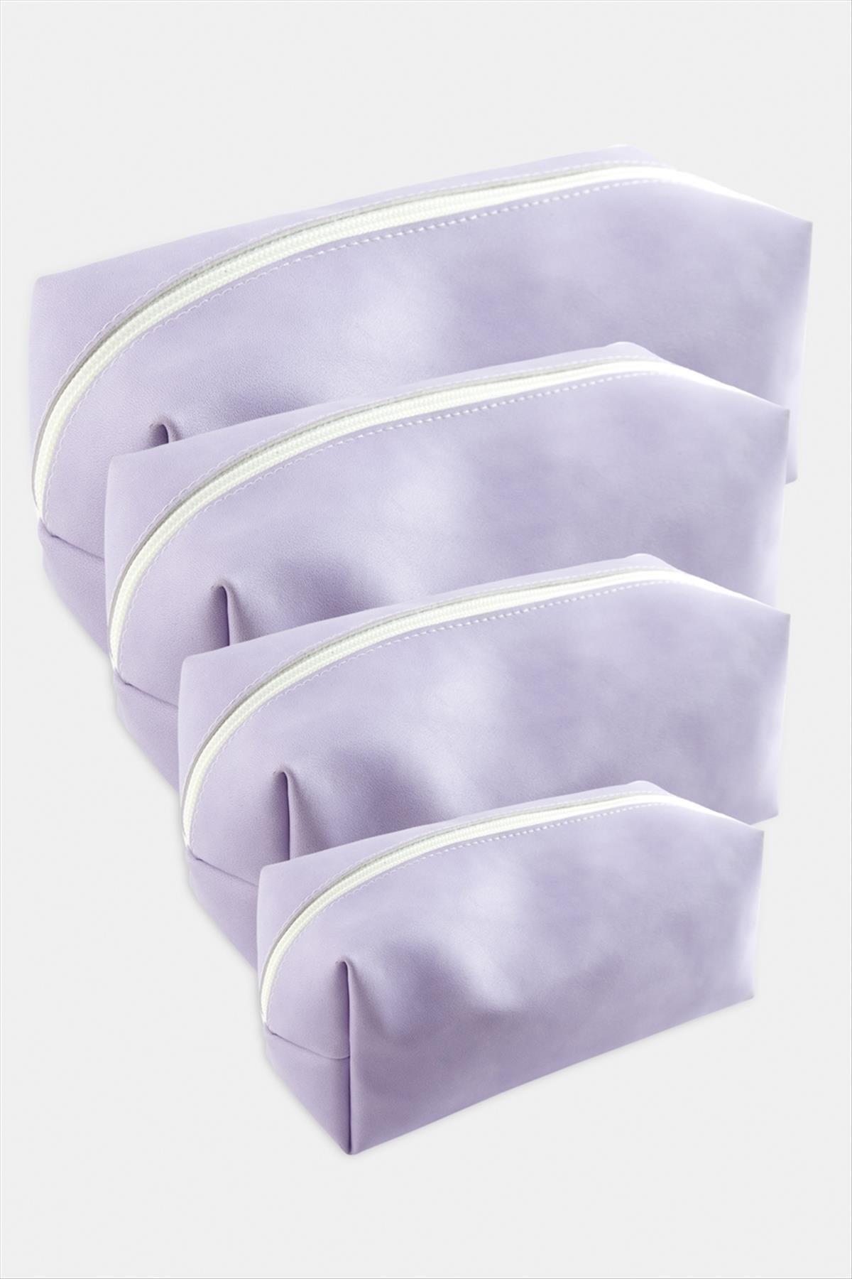 Makyaj Çantası; Ürün malzemesi suni deri ve fermuarlıdır. Fiyat 1 pakette 4 adet çanta için geçerlidir. Çantalar iç içe geçebilmektedir.