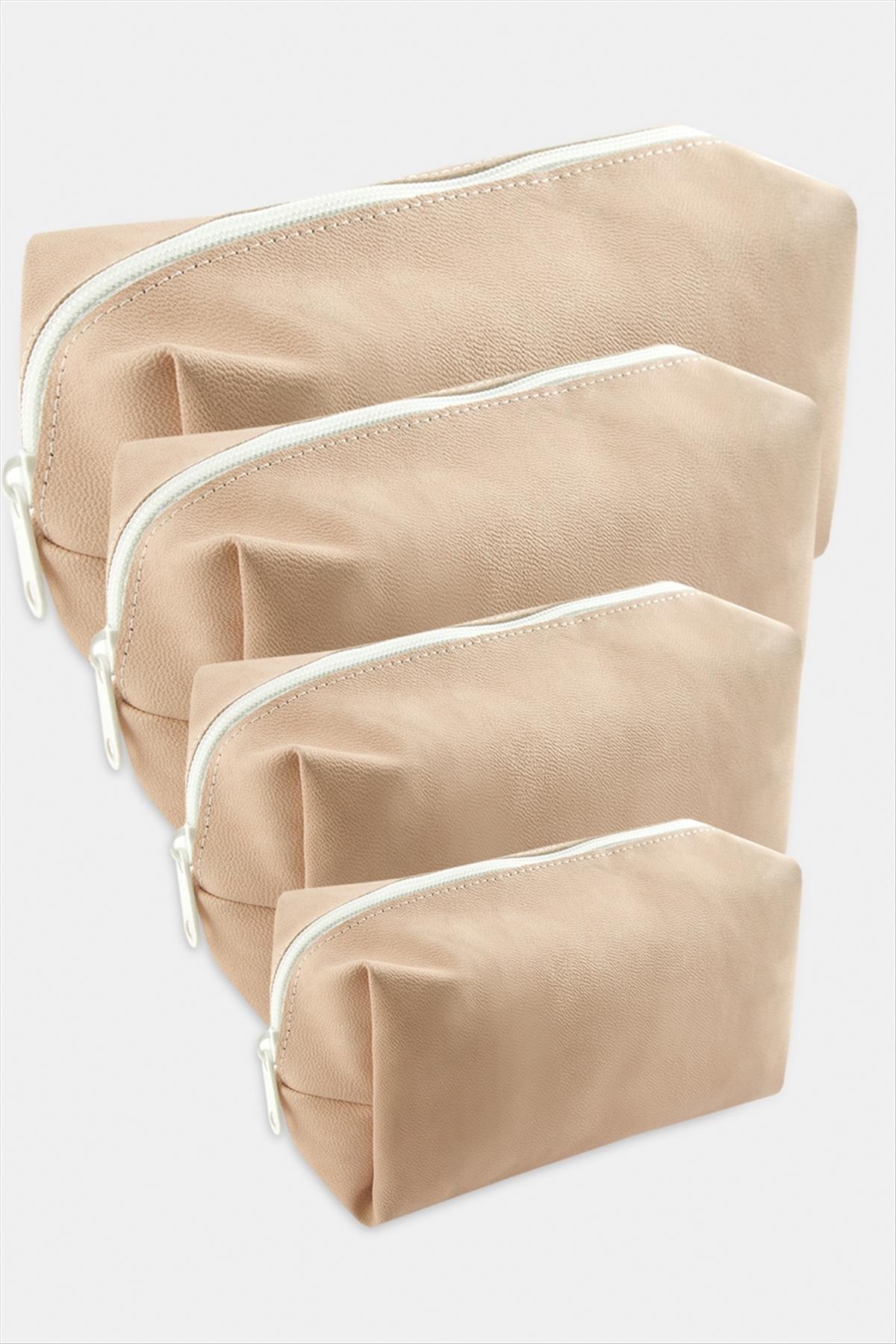Makyaj Çantası; Ürün malzemesi suni deri ve fermuarlıdır. Fiyat 1 pakette 4 adet çanta için geçerlidir. Çantalar iç içe geçebilmektedir.