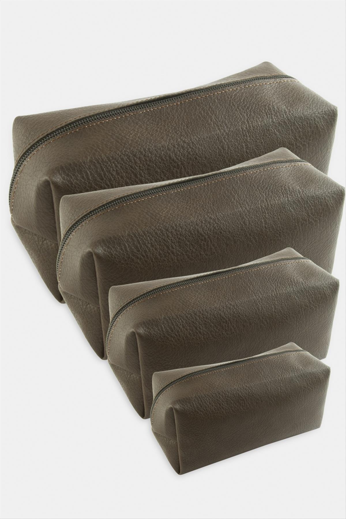 Makyaj Çantası; Ürün malzemesi suni deri ve fermuarlıdır. Fiyat 1 pakette 4 adet çanta için geçerlidir. Çantalar iç içe geçebilmektedir.