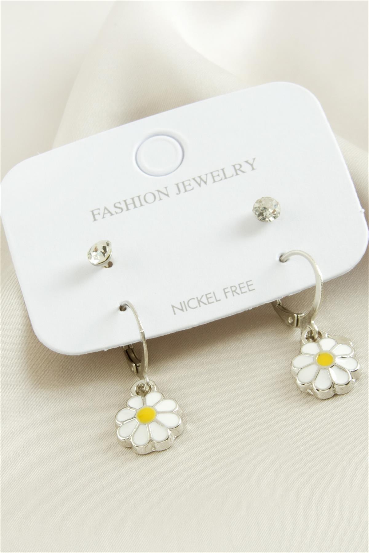 4 Adet Papatya Taşlı Mineli Halka Küpe