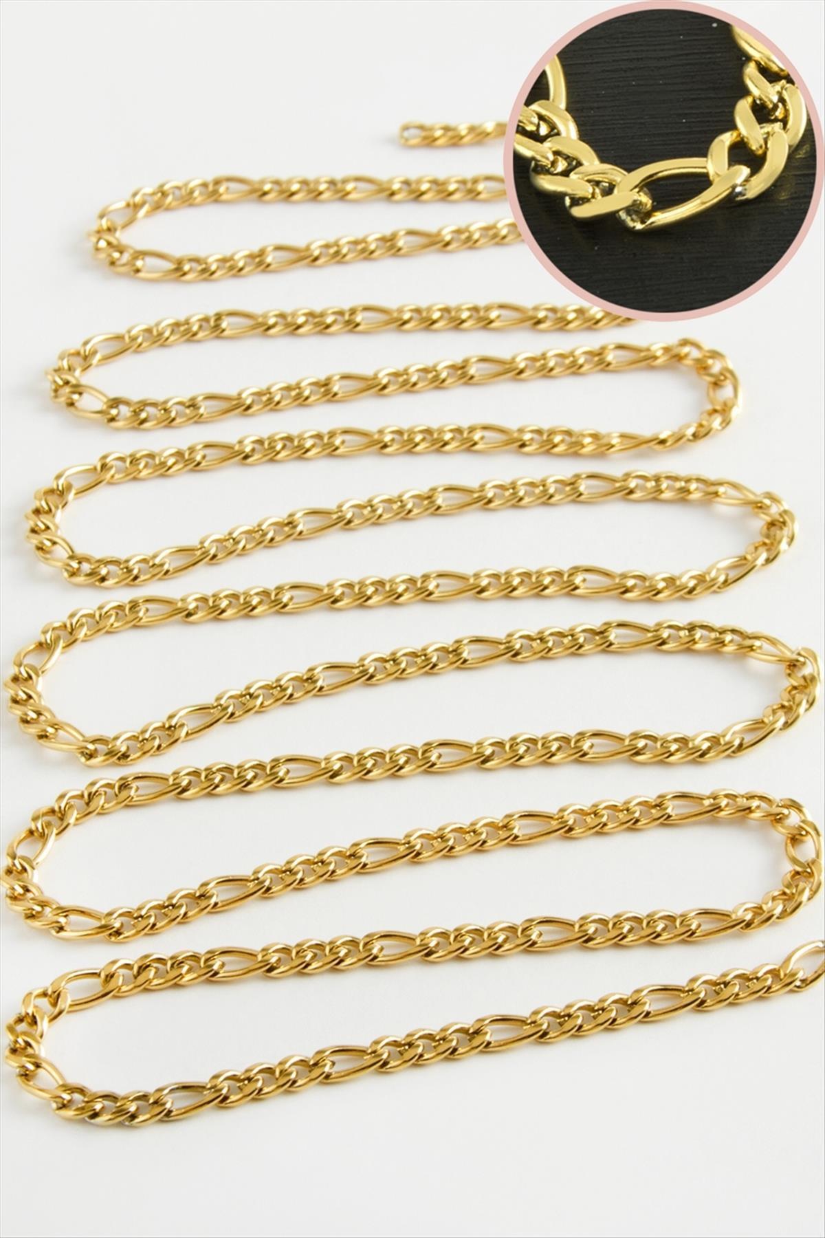 Zincir; Ürün malzemesi çeliktir. Kararma yapmaz 1 sınıf kaliteli malzemeden üretilmiştir. 1 paket içersinde 1 metre çelik zincir olarak satılmaktadır. Zincir kalınlığı 4 mmdir.