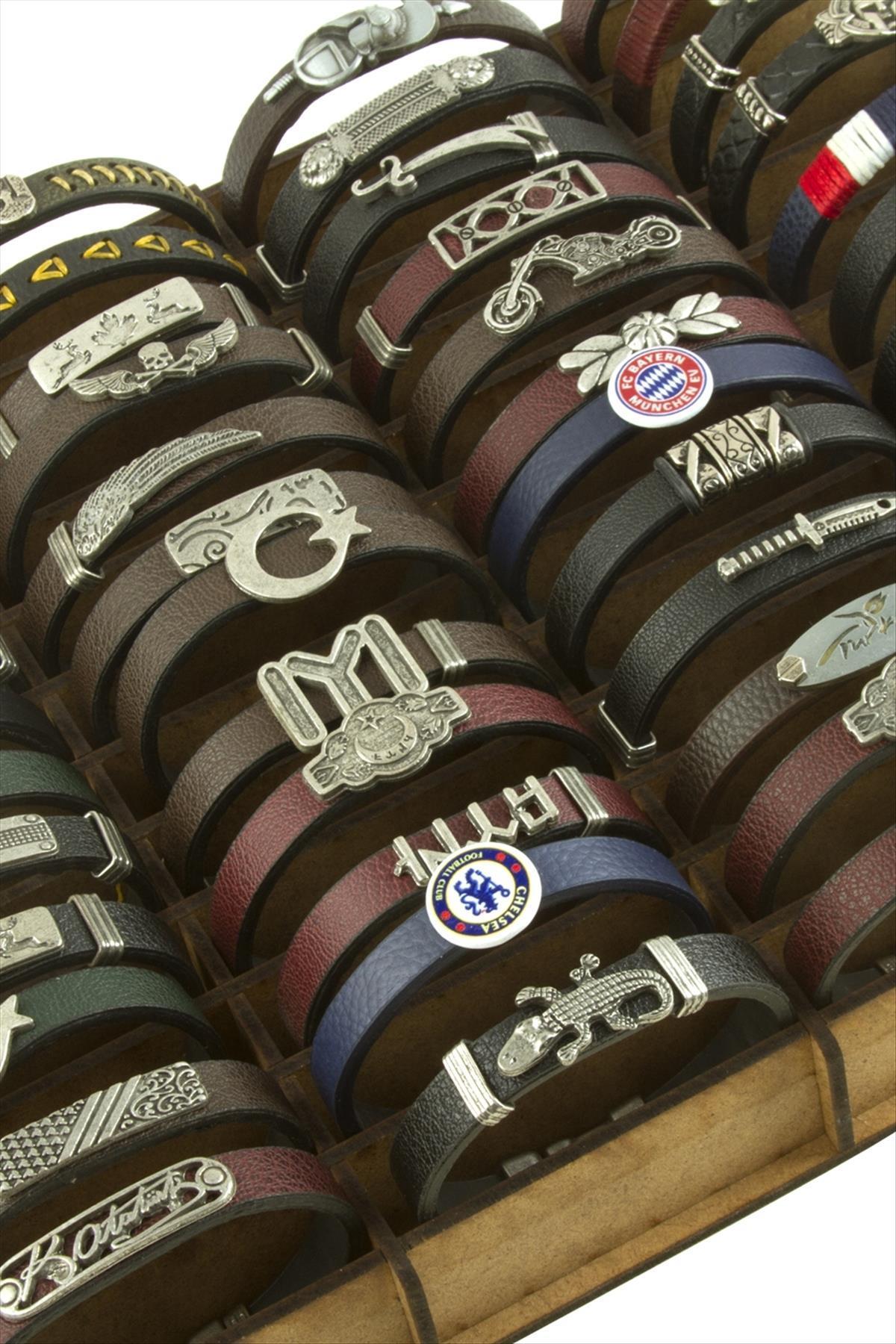 Toptan Bileklik; Ürün içersinde 48 adet Suni Deri bileklik ve Ahsap Stand bulunmaktadır. Bileklik Figürleri ve renkleri asortildir. Siparişlerinizde karışık olarak gönderilecekdir.