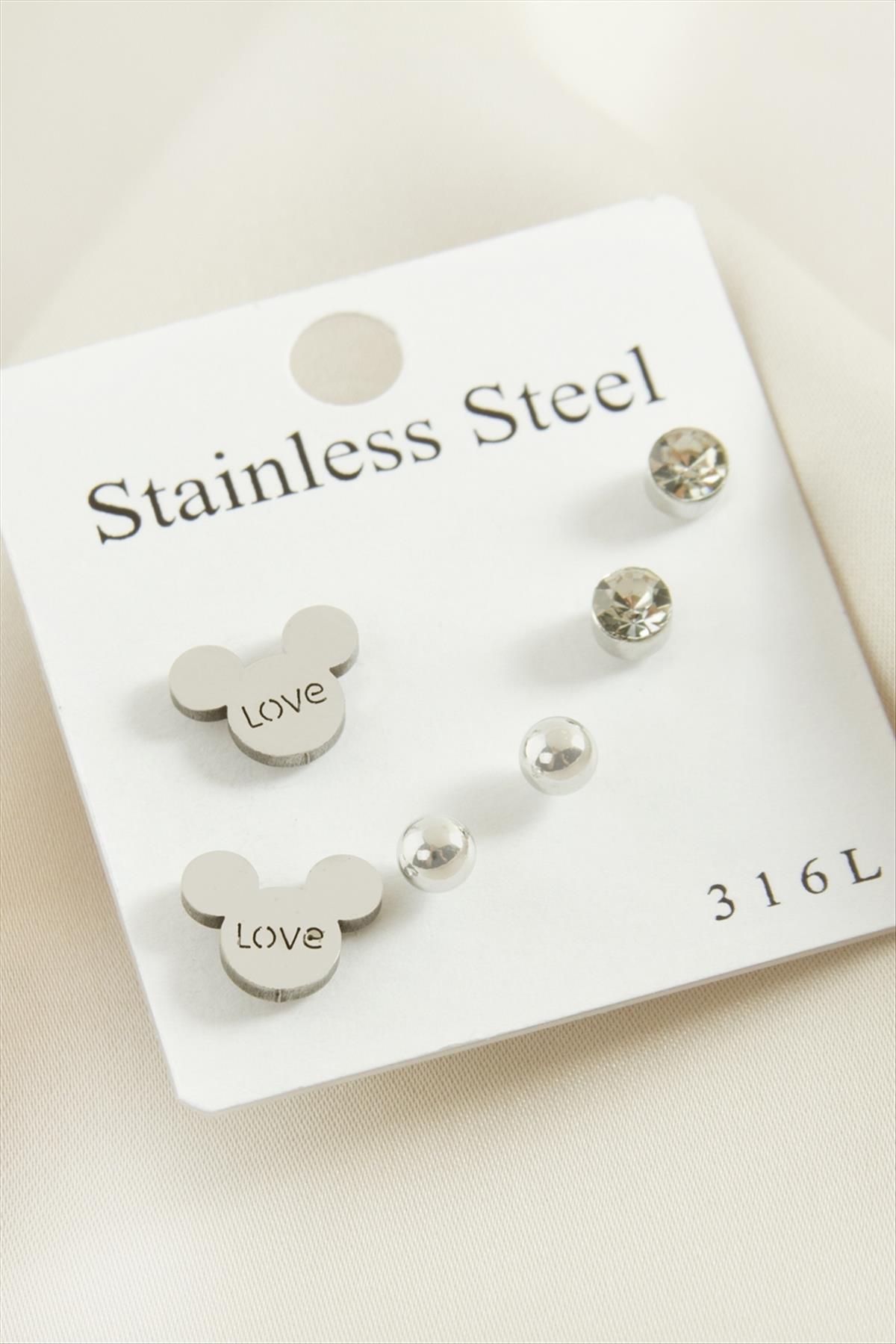 6 Adet Ayıcık Taşlı Çelik Küpe
