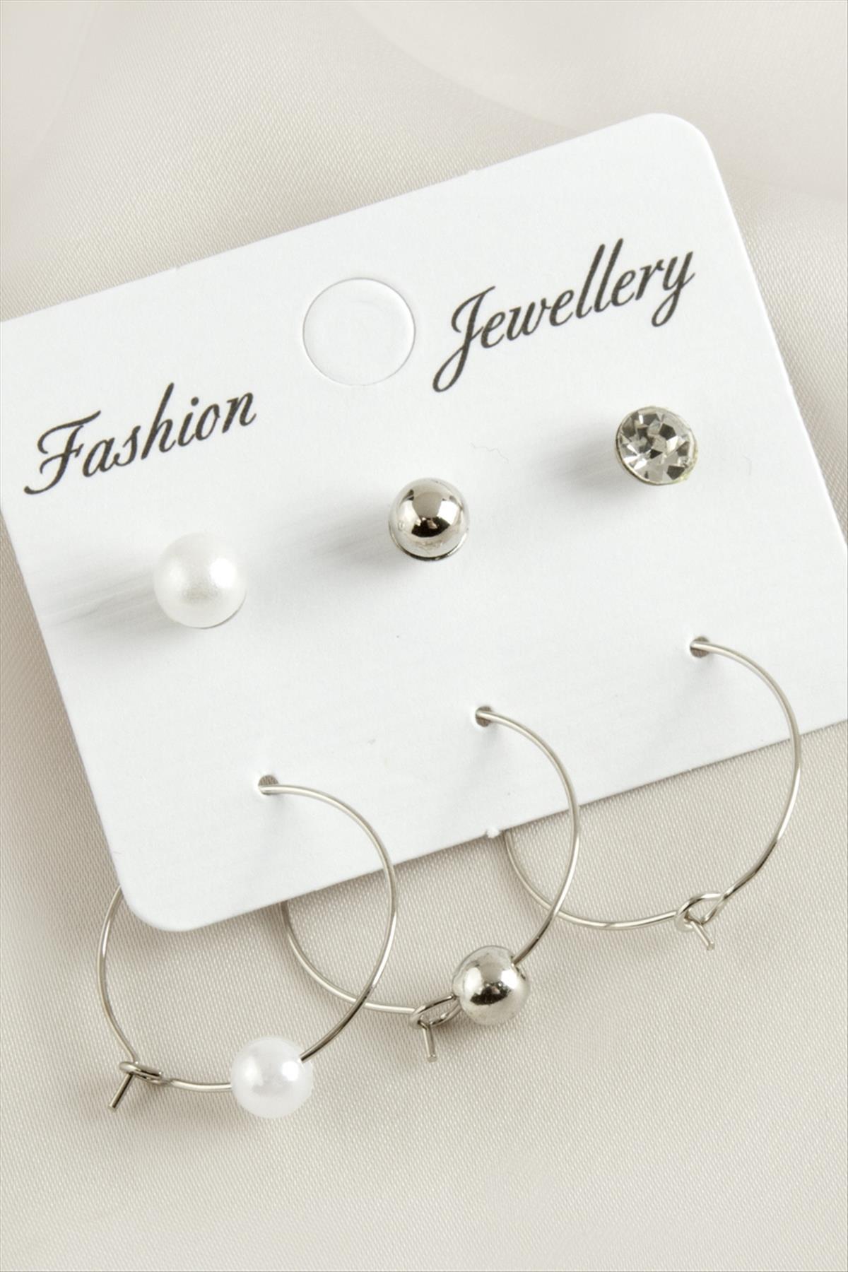 6 Adet İnci Halka Taşlı Küpe 2,5 cm