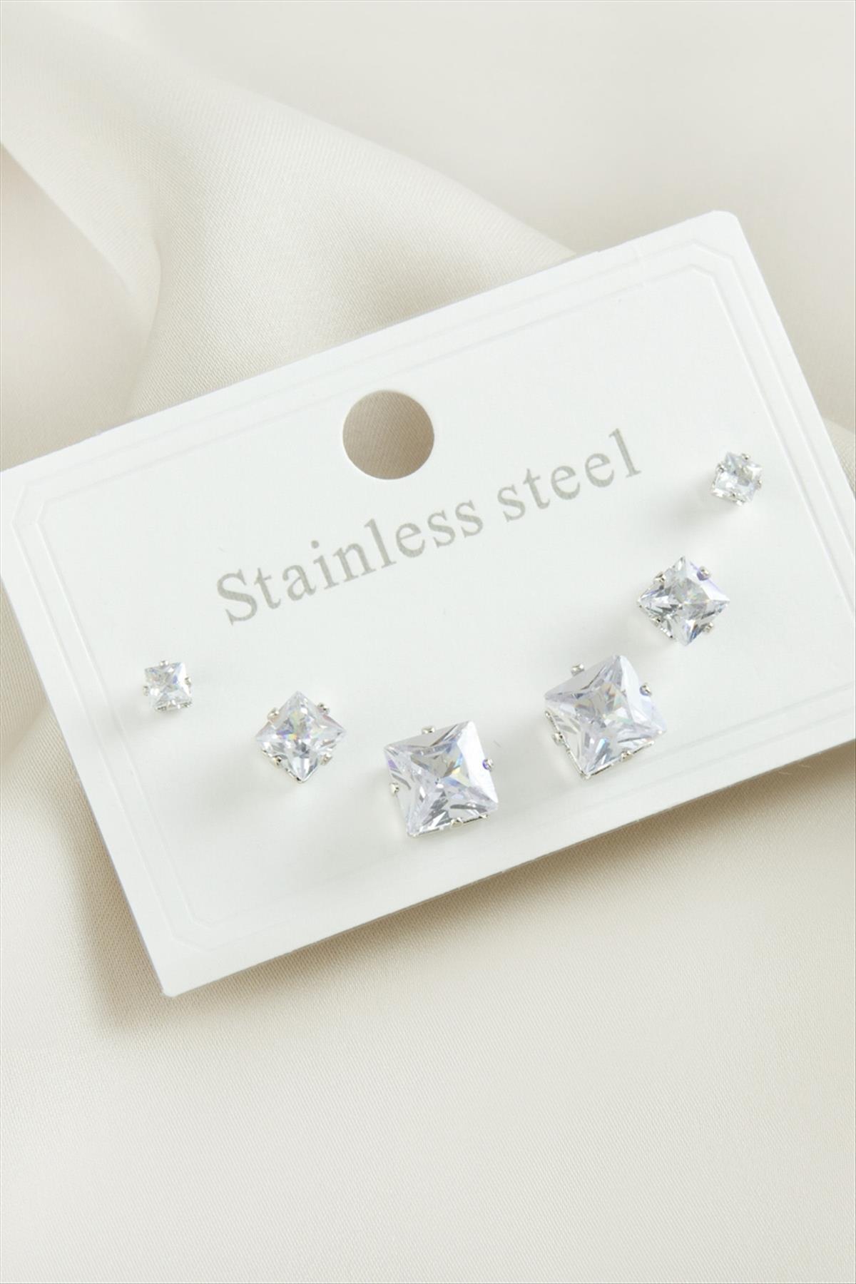 6 Adet Kare Zirkon Taşlı Çelik Küpe