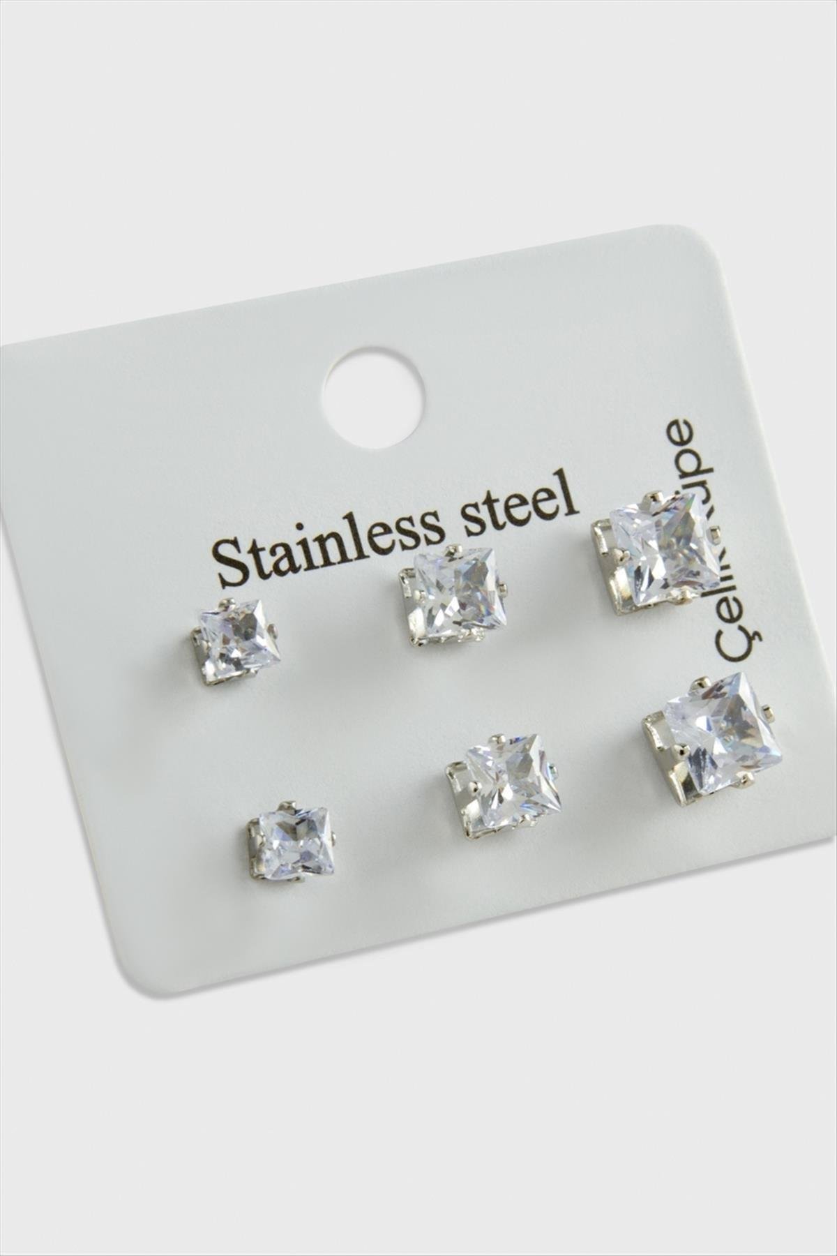 6 Adet Kare Zirkon Tek Taşlı Çelik Küpe