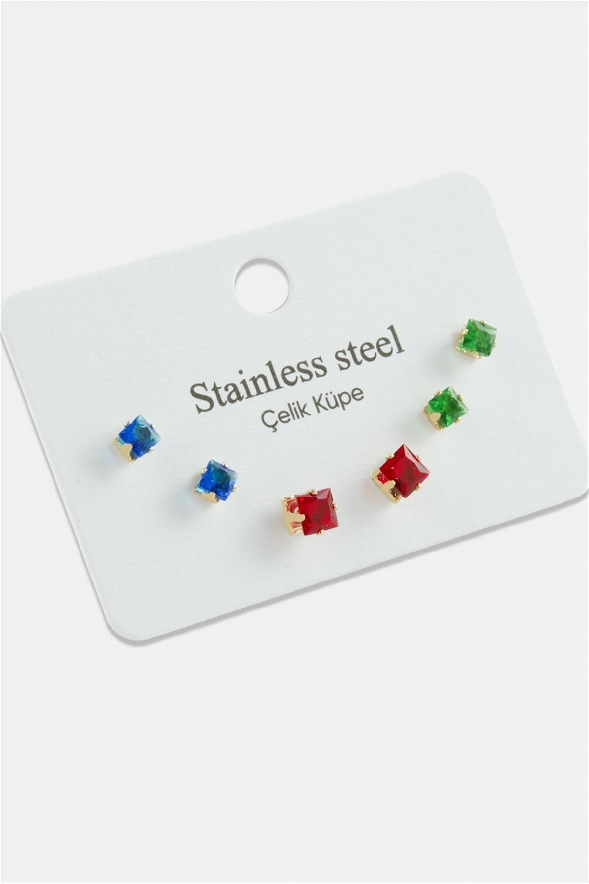 Küpe; Ürün malzemesi zirkon taş ve çeliktir. Küpe boyları yaklaşık 0,4 ve 0,5 cmdir. Kartıyla beraber gönderilecektir. 1 kartta 6 adet olarak satılacaktır.
