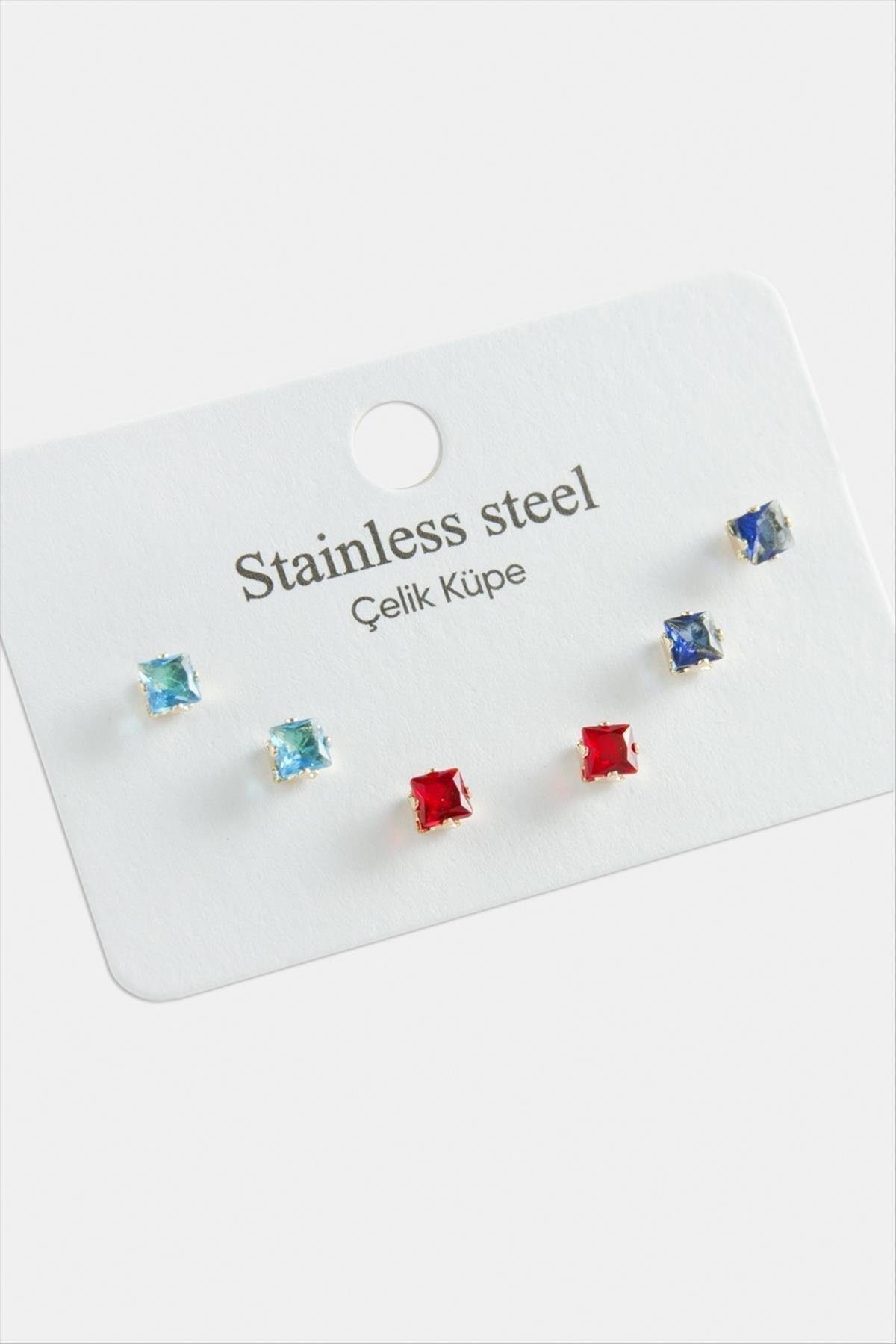 6 Adet Kare Zirkon Tek Taşlı Çelik Küpe