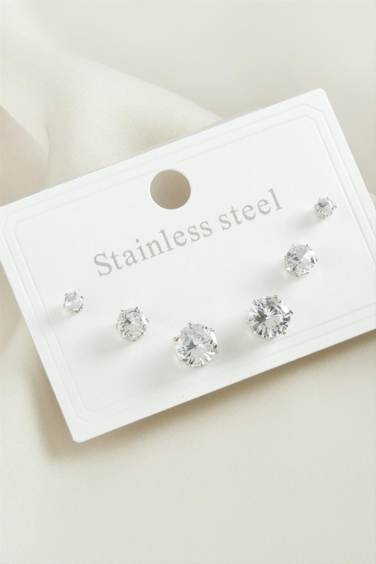 6 Adet Yuvarlak Zirkon Taşlı Çelik Küpe