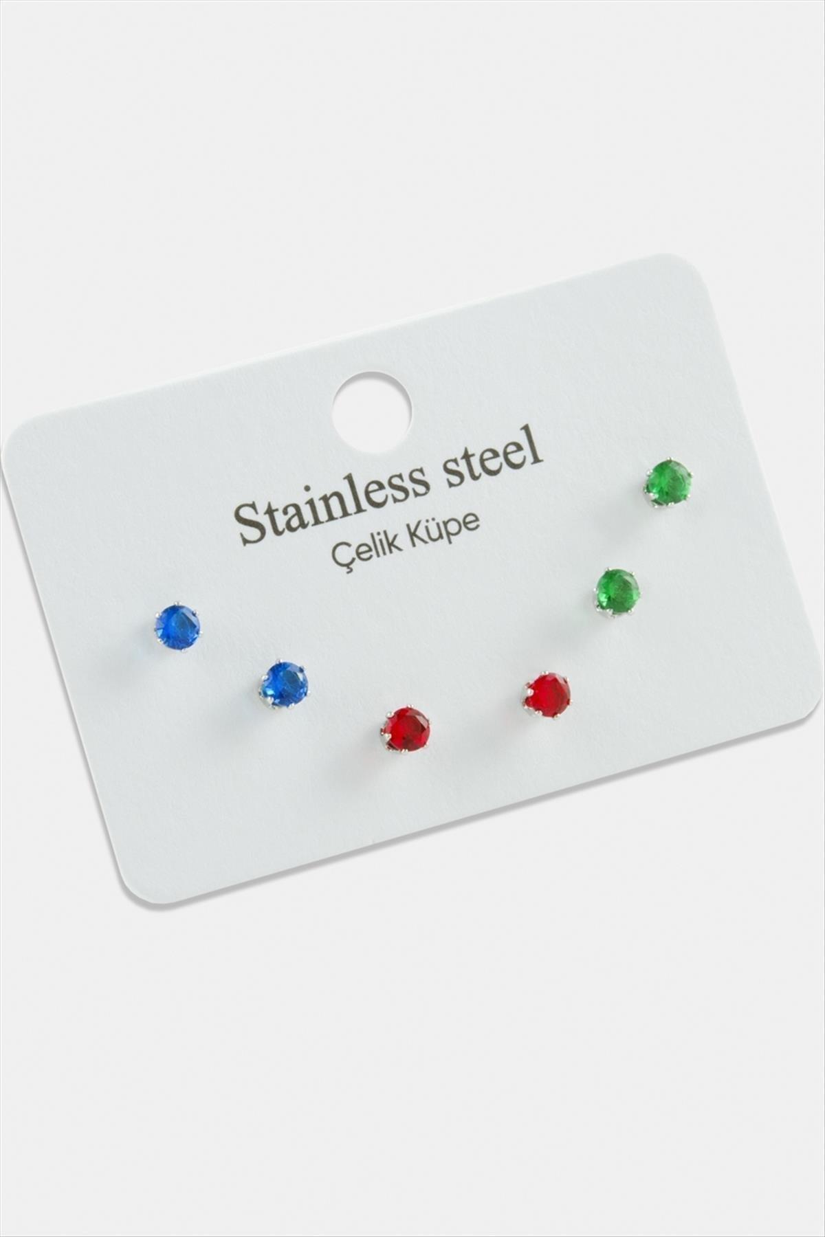 Küpe; Ürün malzemesi zirkon taş ve çeliktir. Küpe boyları yaklaşık 0,5 cmdir. Kartıyla beraber gönderilecektir. 1 kartta 6 adet olarak satılacaktır.