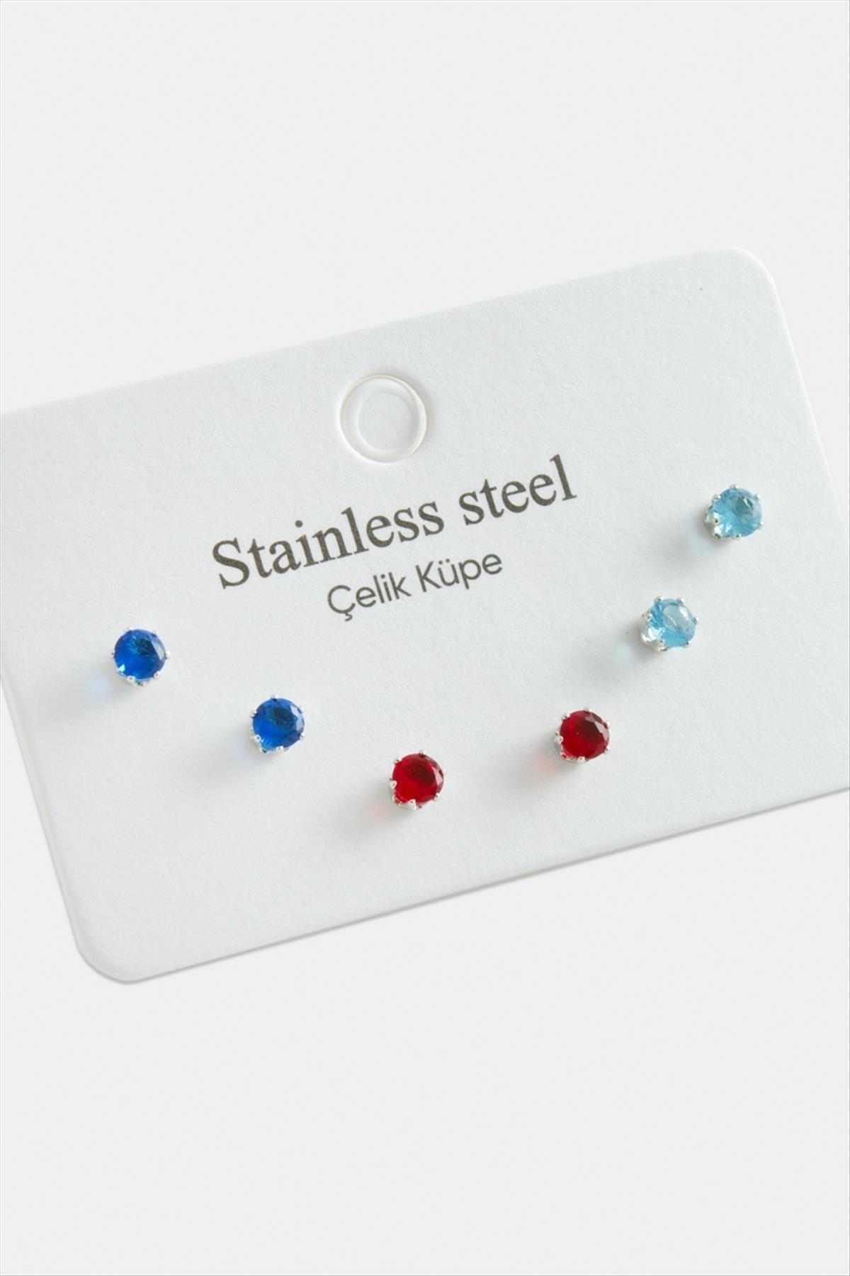 6 Adet Yuvarlak Zirkon Tek Taşlı Çelik Küpe
