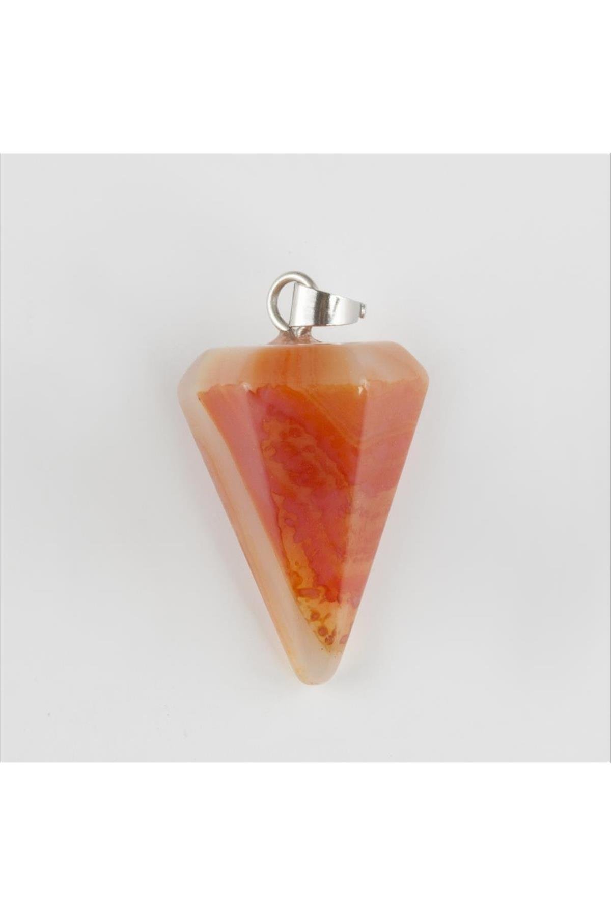Ürün kolye ucu olarak kullanılmaktadır. Doğaltaş akikdir. Şekil olarak üçgen biçimindedir. Üzerinde ip veya zincir geçirmek için metal kısımı bulunmaktadır. Uzunluğu yaklaşık olarak 2 cmdir. Ürün zincirsiz olarak gönderilecektir.