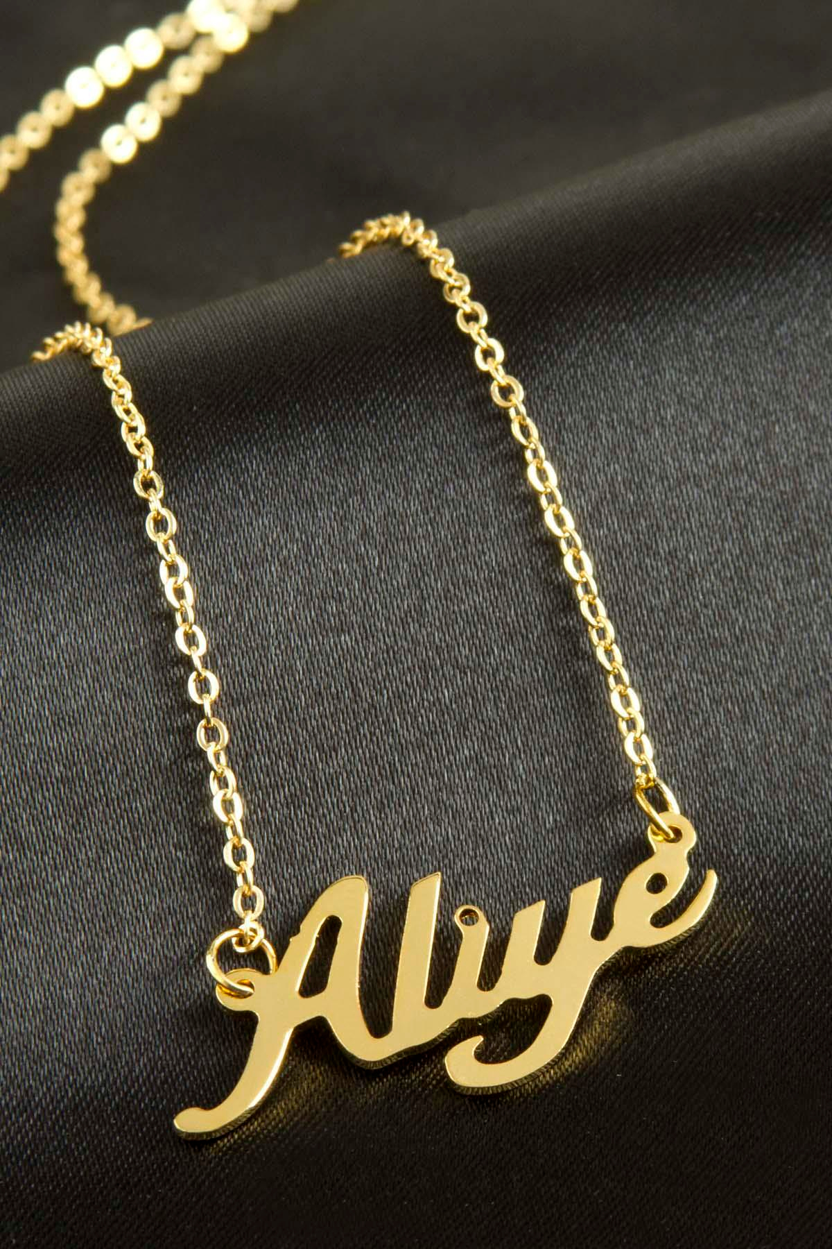 Aliye isimli kolye. İsimli kolye pirinç madeninden ve altın kaplamalıdır. Kişiye özel üretilmektedir.Yazdırmak istediğiniz ismi bize mesaj olarak iletmeniz gerekmektedir. Kullanıma bağlı olarak uzun süre kullanıma uygundur. Ürün malzemesi 1.sınıf kalitededir. Ürün ve zinciri sarı renktedir. Ürün zincir boyu 45 cm ve ürün üzerindeki isimler yaklaşık 3 cmdir. İsim boyları ürün ismine göre degişiklik göstermektedir.