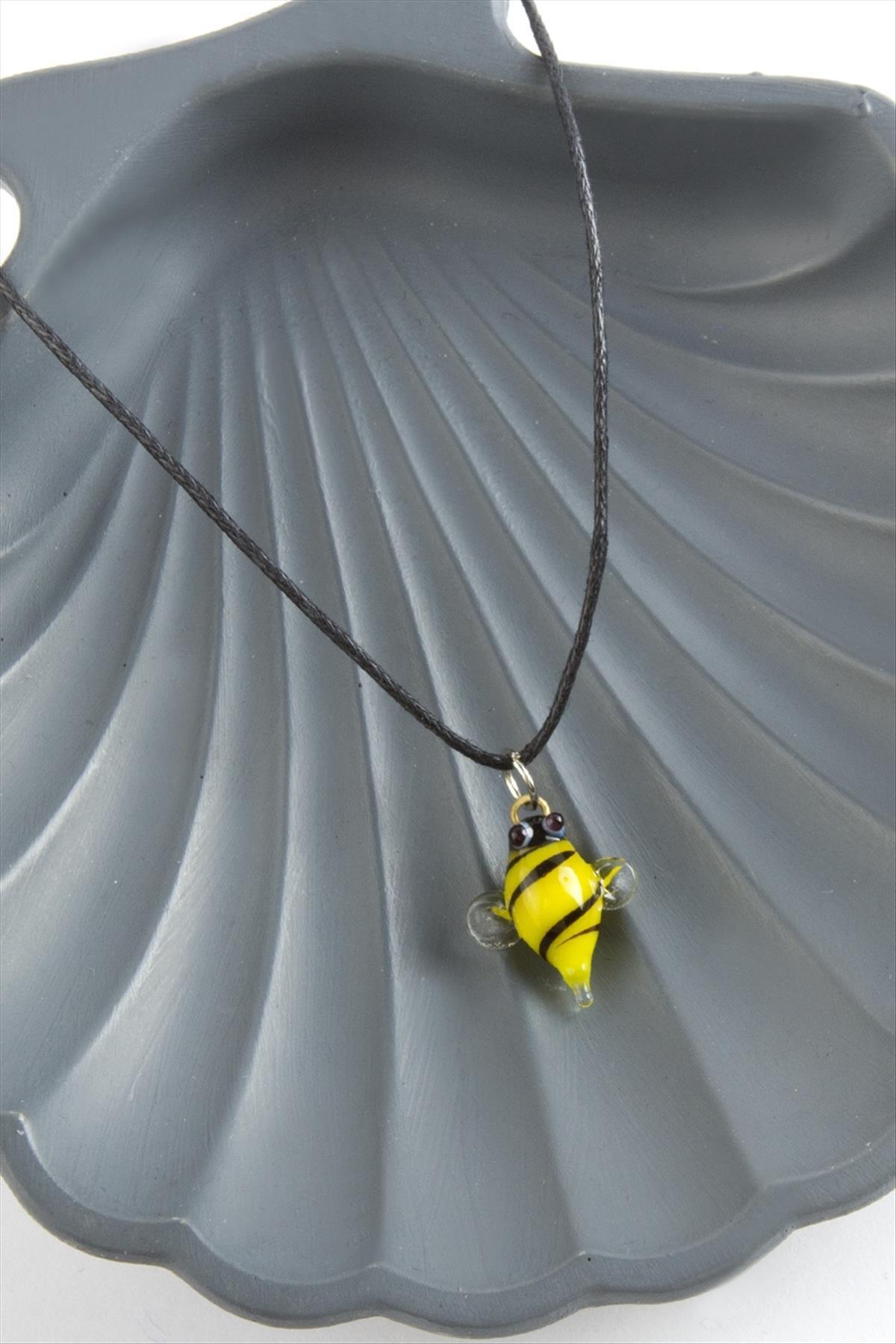 Cam Kolye; Kordonu vinlex deridir. Ürün ustalarımız tarafından atölyemizde tek tek el işçiliği ile üretilmektedir. İmalatımız da yerli cam ve orijinal italyan cam kullanılmaktadır. Cam ürünlerinde sanatsal bir işçilikle çalışılmaktadır. Ürün cam boyu 1,5 cm ve ip boyu 45 cmdir.