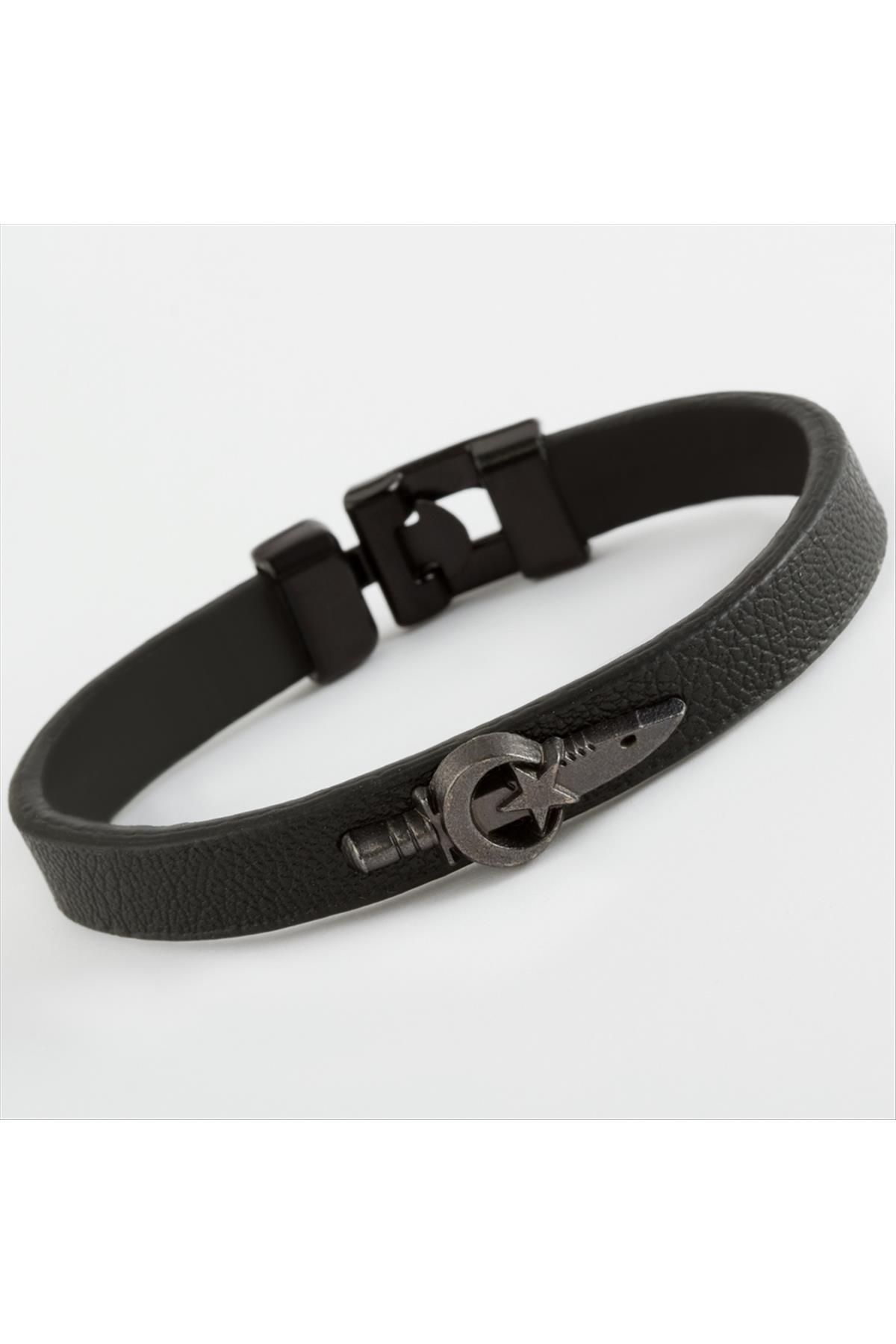 Ay Yıldız Hançer Kaliteli Suni Deri Bileklik