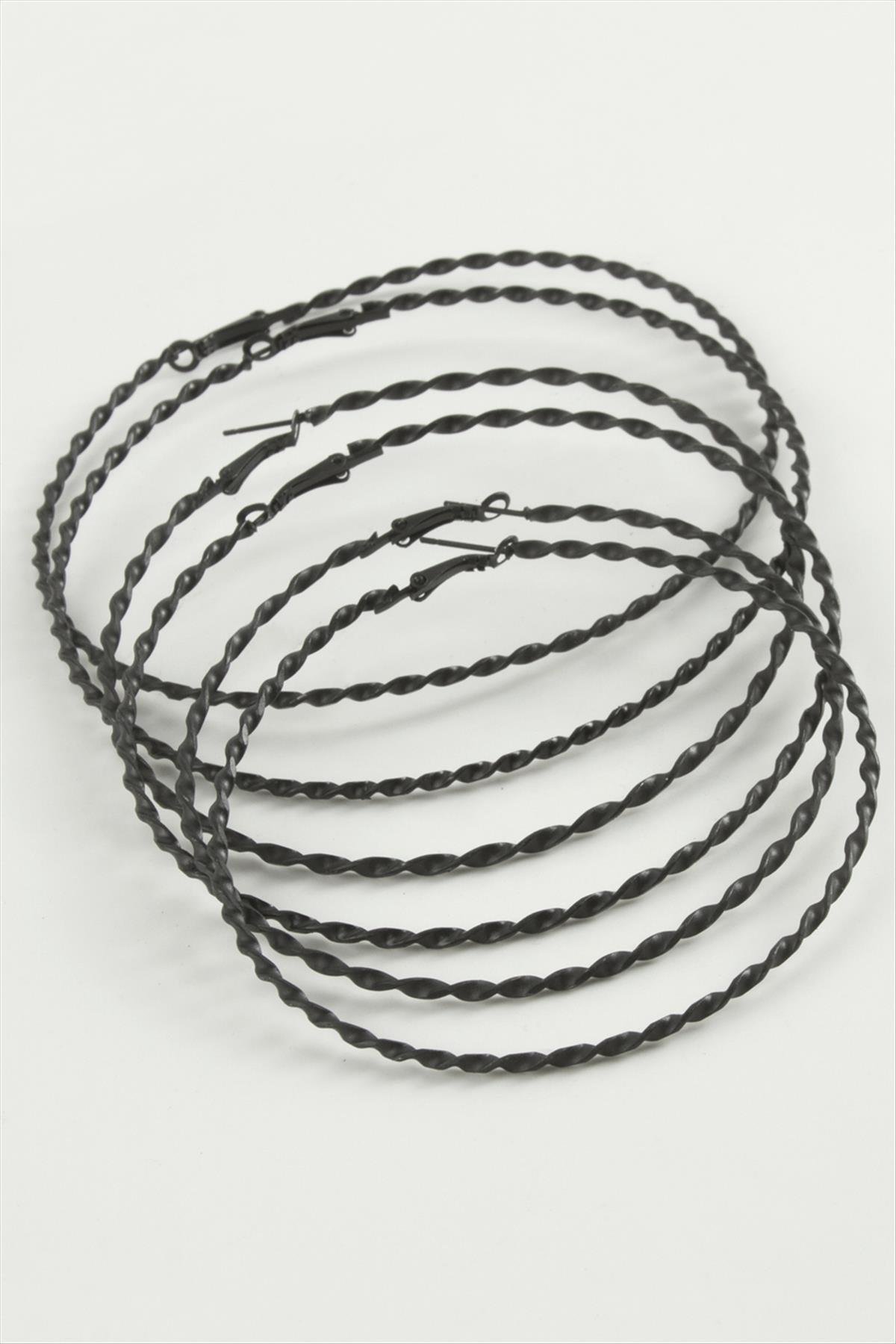 Küpe; Ürün malzemesi metal ve kartlıdır. 1 kartta 6 adet halka küpe olarak satılmaktadır. Halka çapı 8-9-10 cmdir.