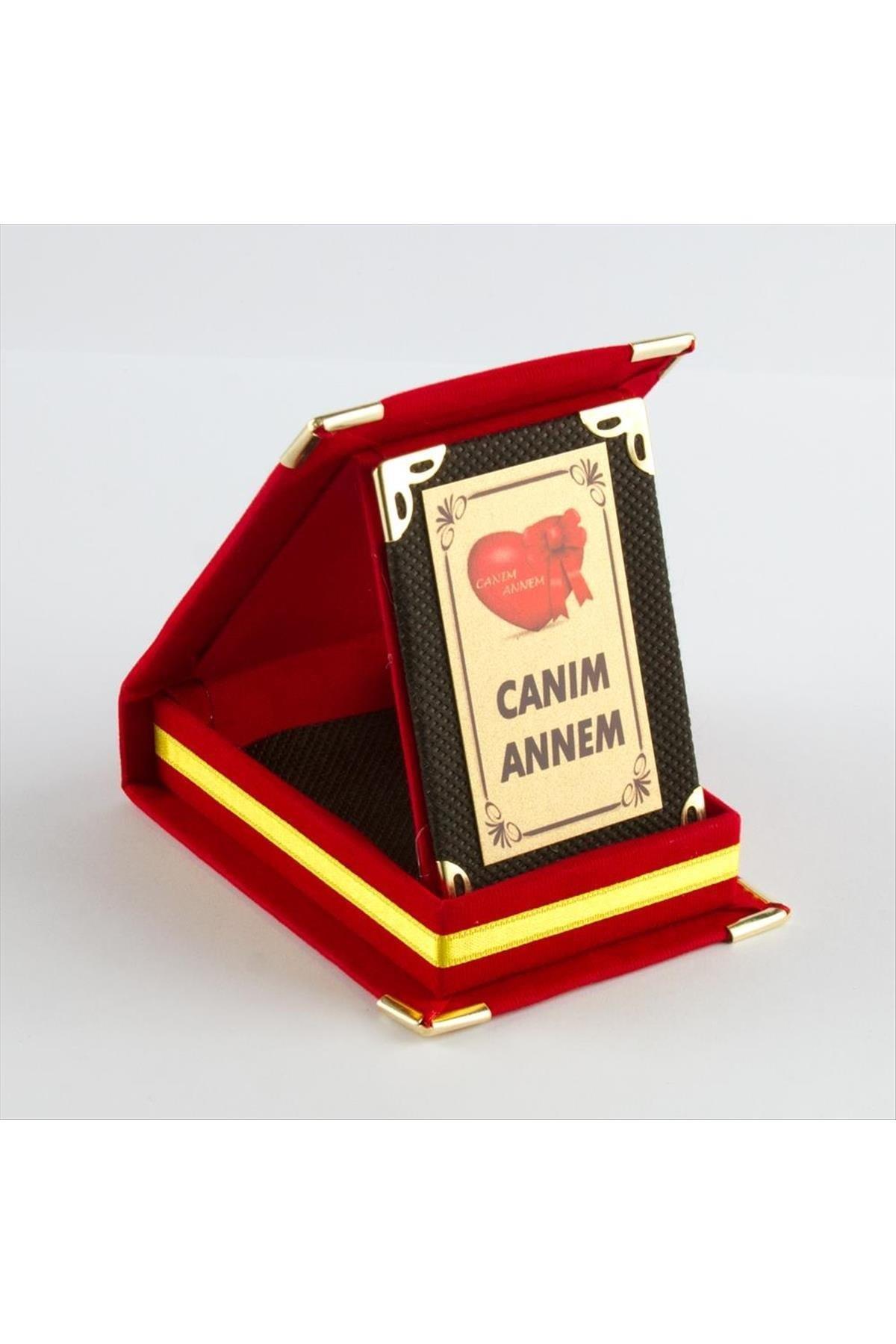 Süet kutulu plaket, metal üzerine yazı yazılarak üretilmiştir, ölçüleri kurulu vaziyette; yükseklik: 11cm, genişlik: 8cm'dir. Kalp içersinde canım annem yazmamaktadır.