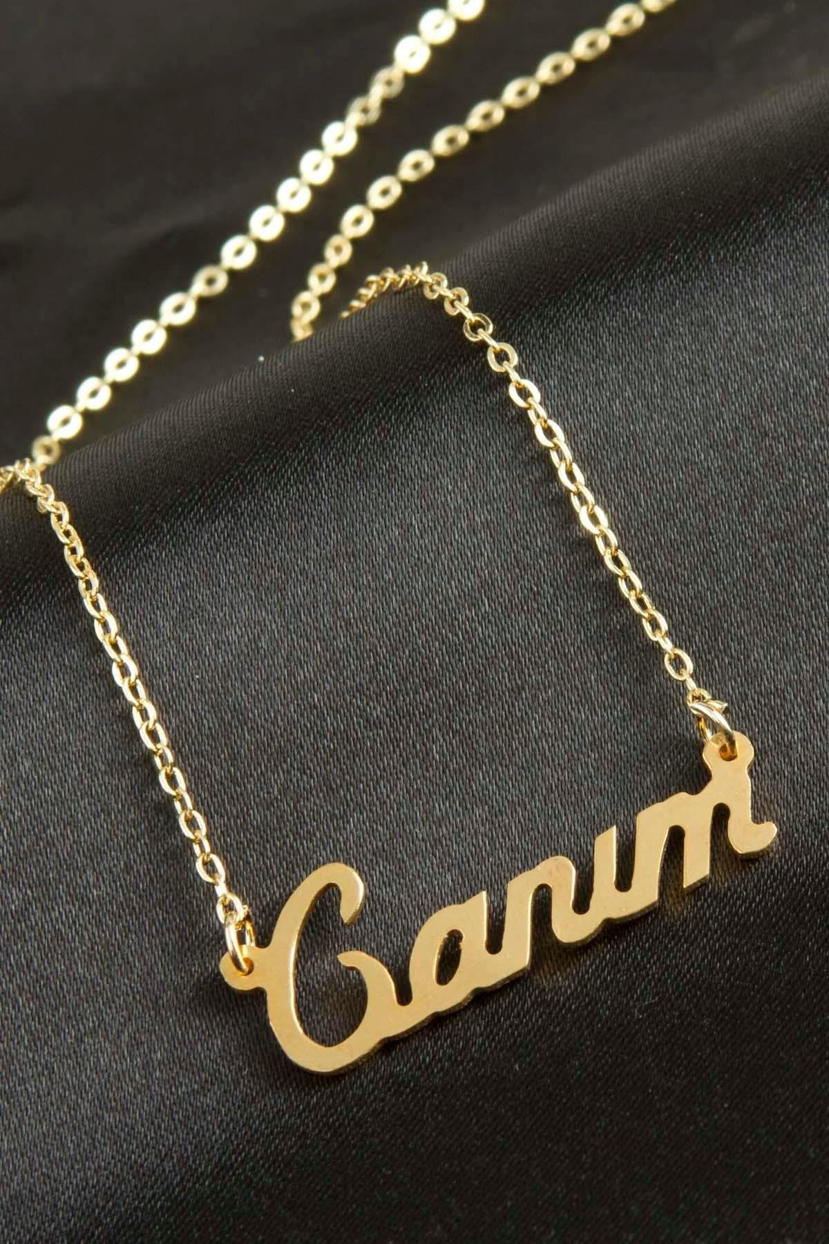 Canım İsimli Kolye. İsimli kolye pirinç madeninden ve altın kaplamalıdır. Kişiye özel üretilmektedir.Yazdırmak istediğiniz ismi bize mesaj olarak iletmeniz gerekmektedir. Kullanıma bağlı olarak uzun süre kullanıma uygundur. Ürün malzemesi 1.sınıf kalitededir. Ürün ve zinciri sarı renktedir. Ürün zincir boyu 45 cm ve ürün üzerindeki isimler yaklaşık 3 cmdir. İsim boyları ürün ismine göre degişiklik göstermektedir.