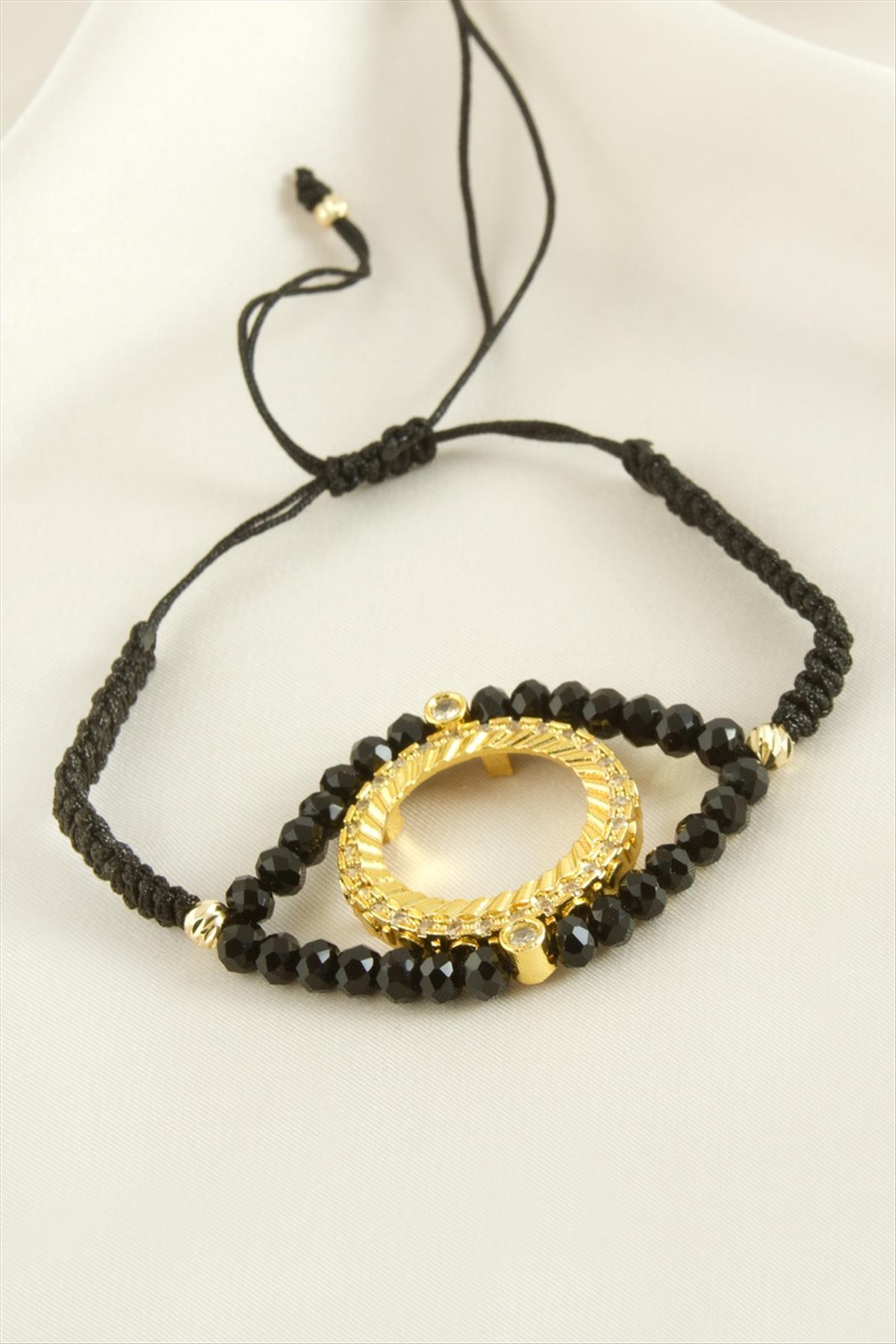 Bileklik : Ürün malzemesi kristal, makrome ip, taş ve metalden üretilmiştir. Ürün arkası asansörlüdür. Bileğe göre ayarlanabilir. Kartlıdır.