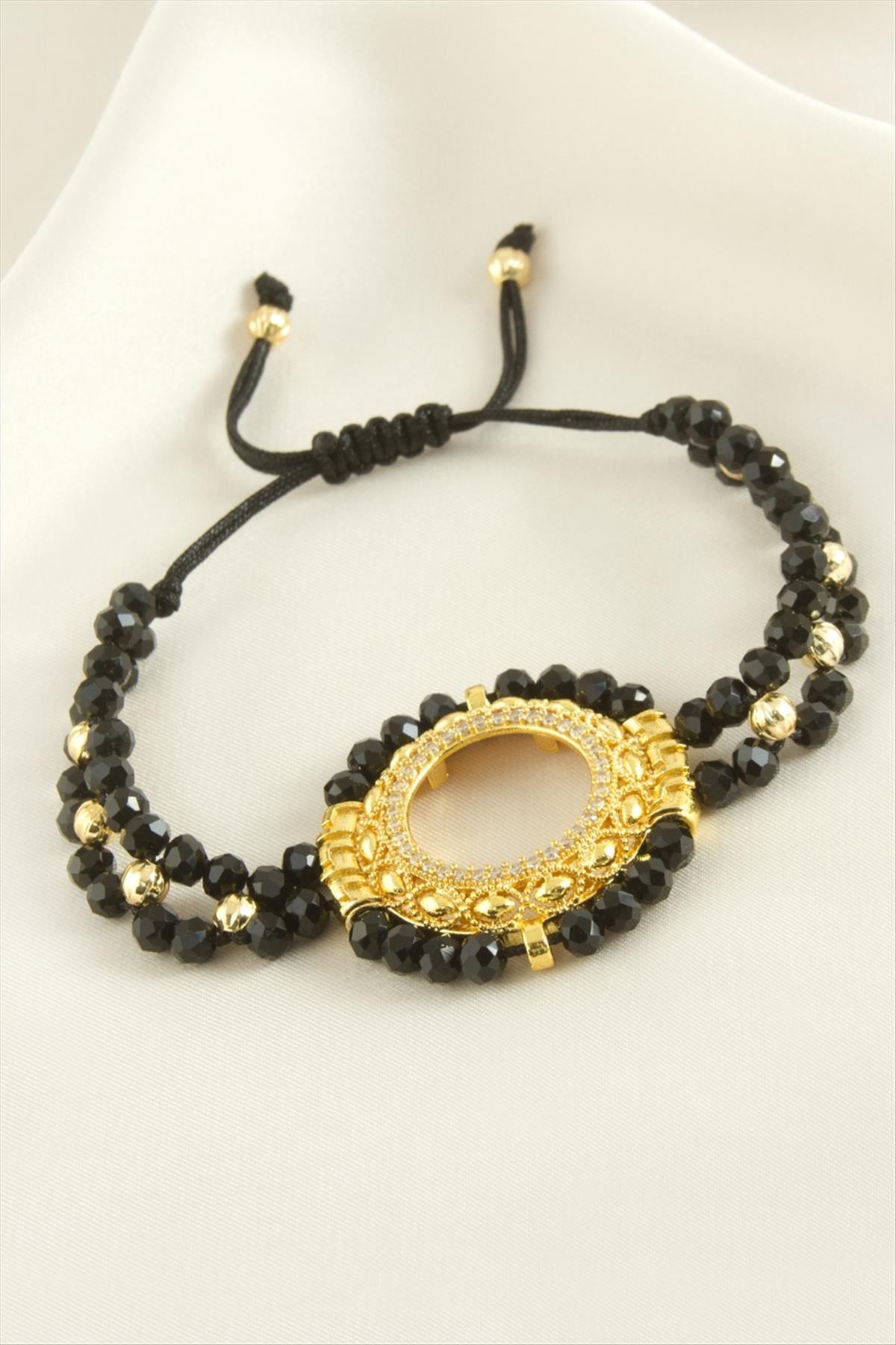 Bileklik : Ürün malzemesi kristal, makrome ip, taş ve metalden üretilmiştir. Ürün arkası asansörlüdür. Bileğe göre ayarlanabilir. Kartlıdır.