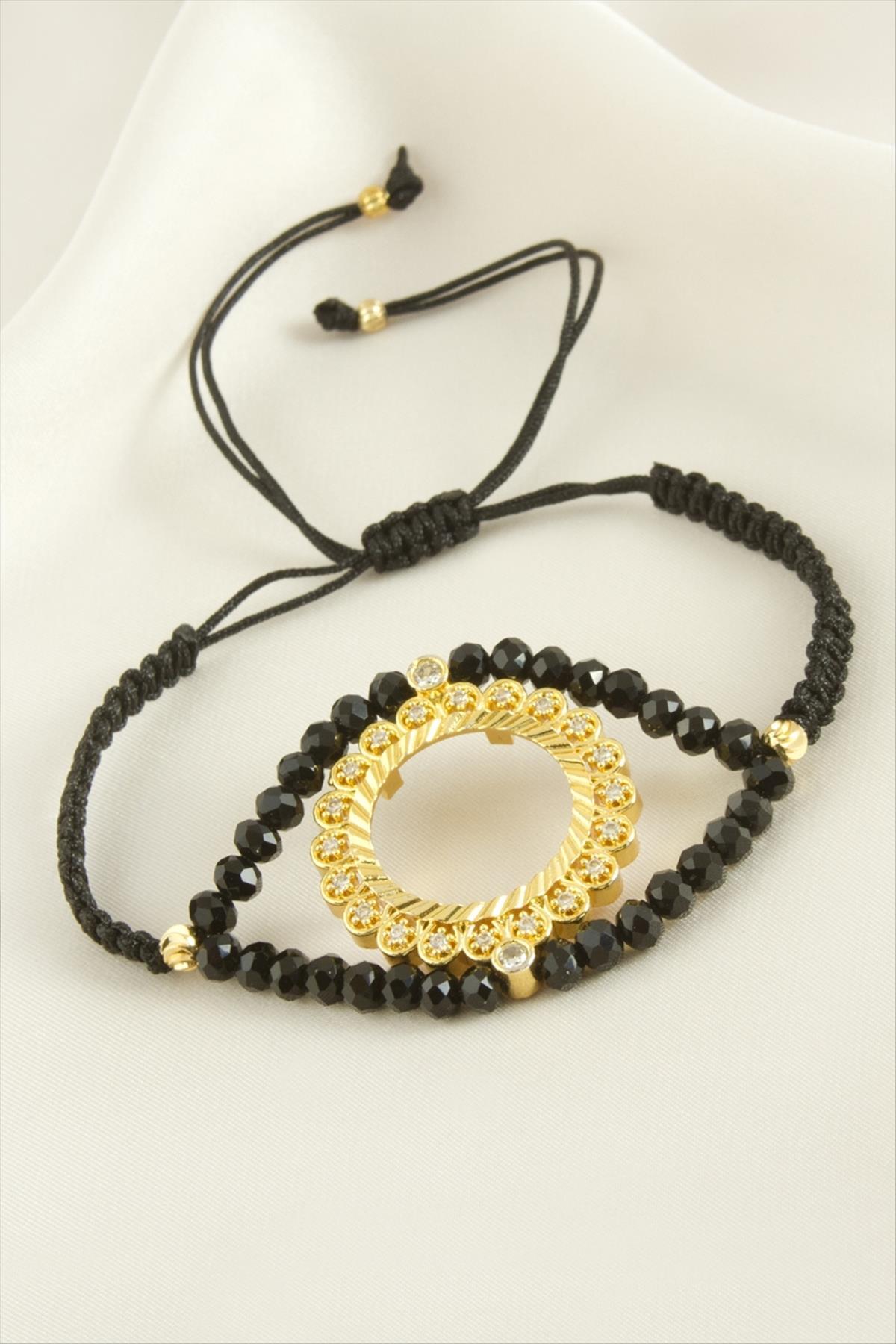 Bileklik : Ürün malzemesi kristal, makrome ip, taş ve metalden üretilmiştir. Ürün arkası asansörlüdür. Bileğe göre ayarlanabilir. Kartlıdır.