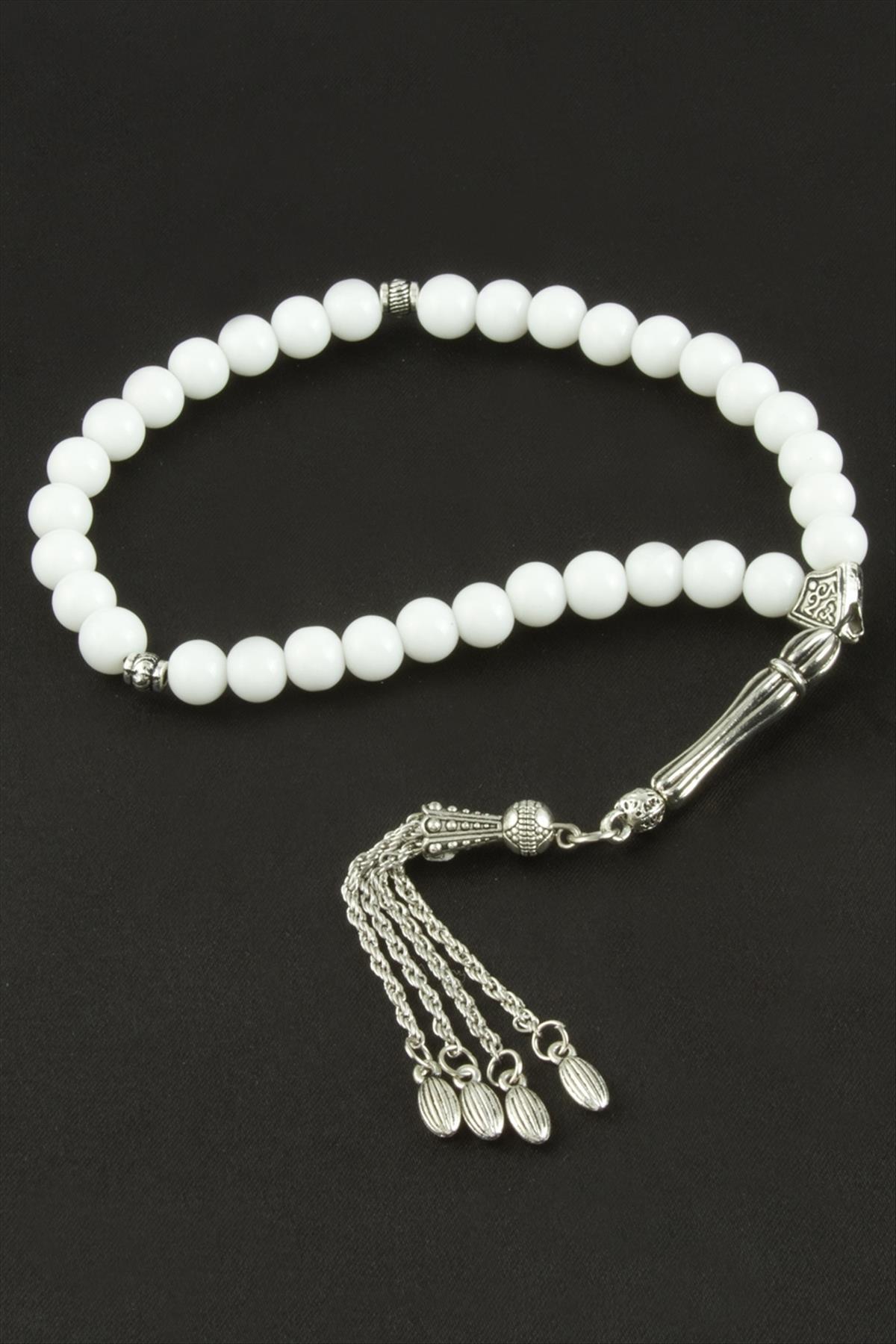 Tesbih ; Ceyt taşından imal edilmiştir. Taş boyutu 8 mmdir. Püskül figürleri asortilidir. Siparişlerinizde karışık olarak gönderilecektir.