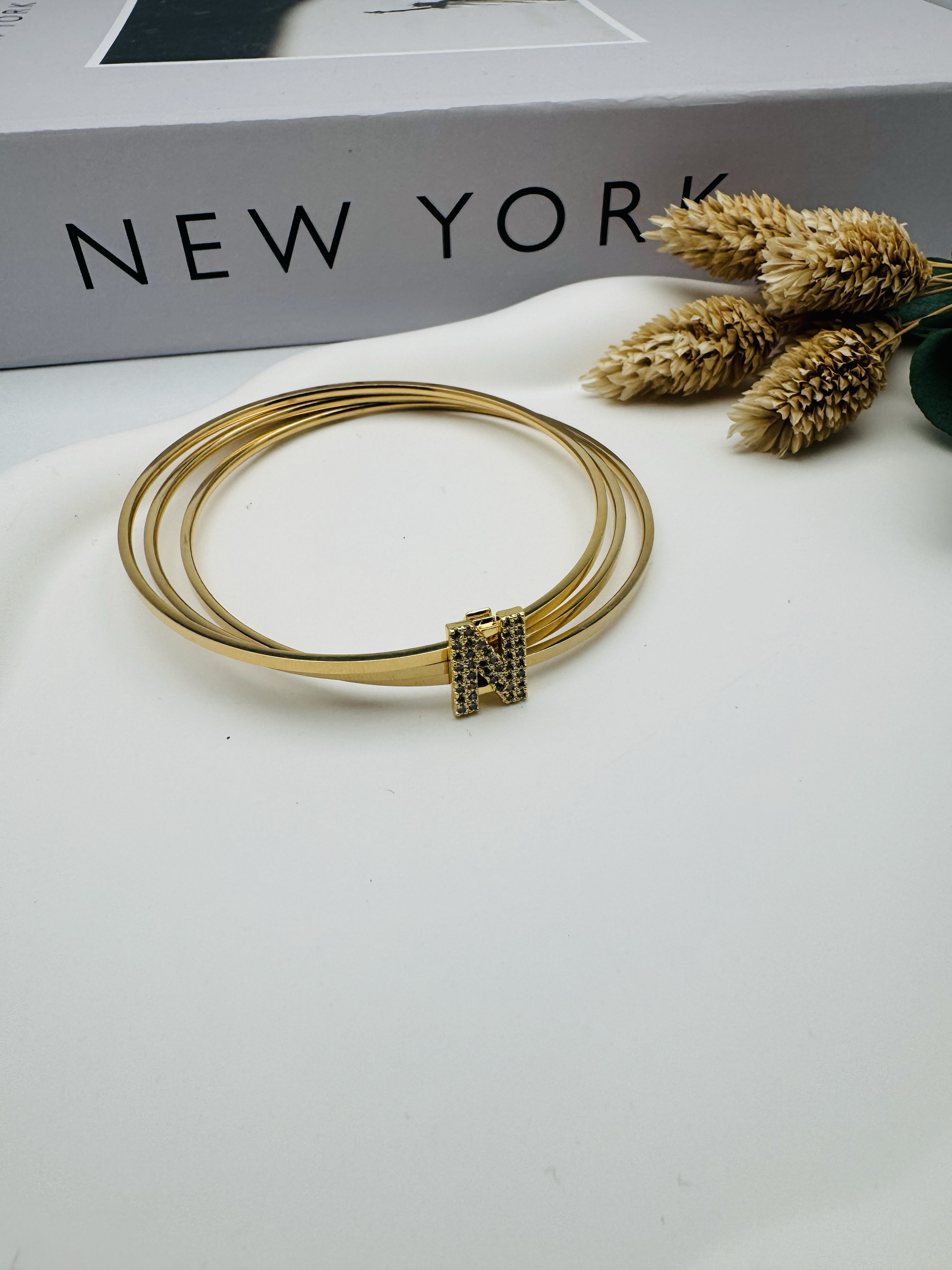 Charmlı Ajda Bilezik N Harfi  (Gold) 6,7mm 22083