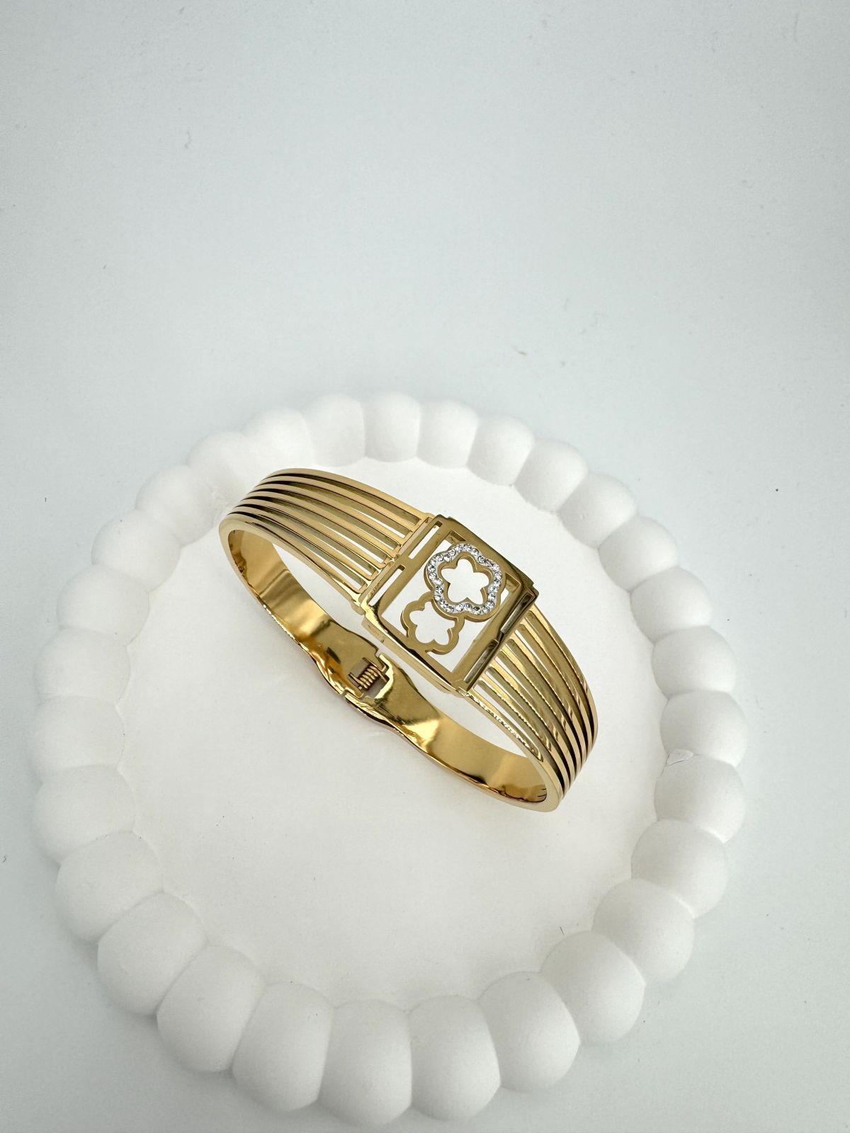 Çiçek Detaylı Taşlı  Çelik Kelepçe (Gold) 2089